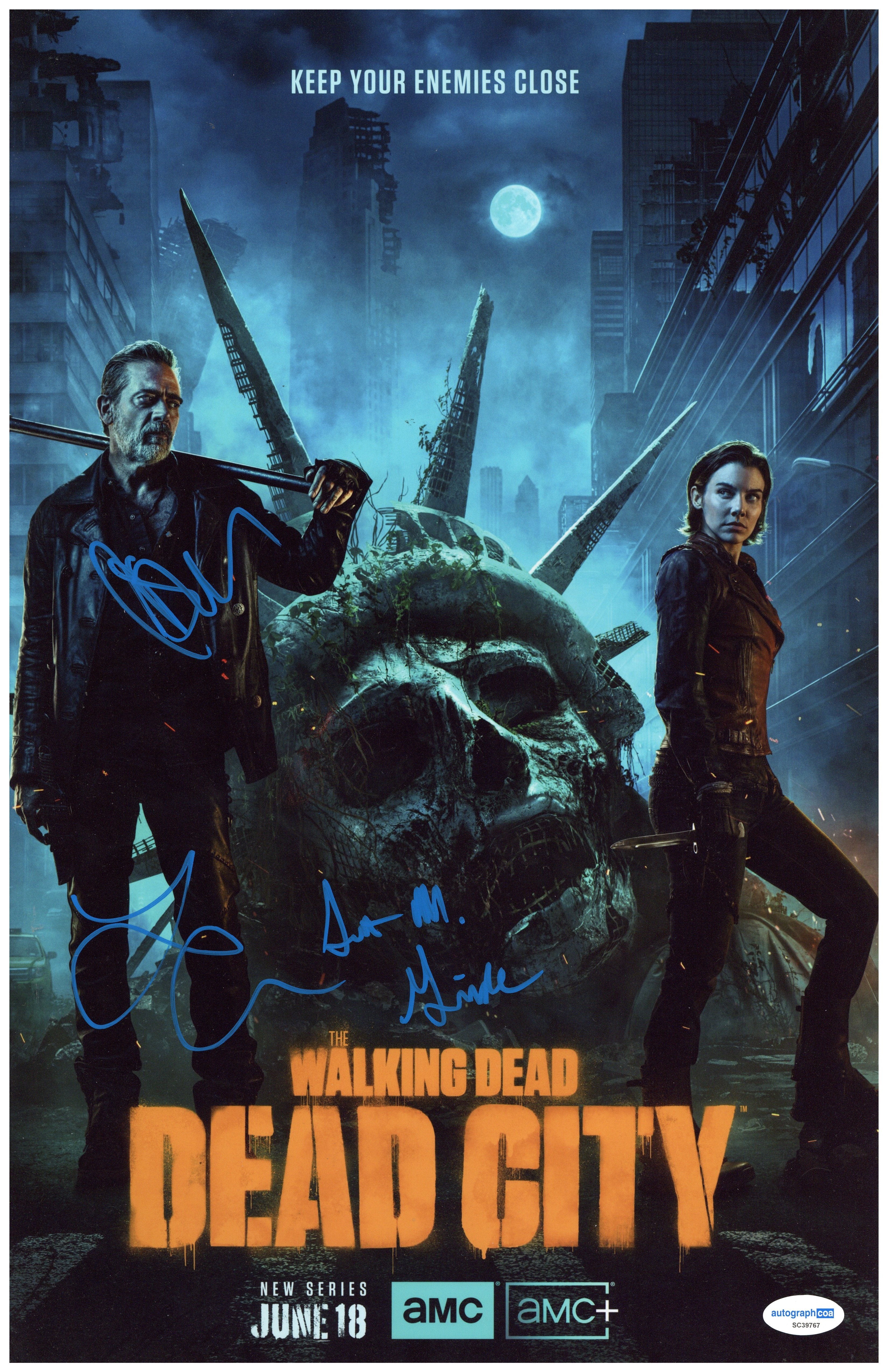Autographed by Jeffrey Dean Morgan, who brought unforgettable intensity to the role of Negan, alongside Lauren Cohan, beloved for her portrayal of the resilient and fan-favorite Maggie Greene. Completing this incredible lineup is Scott M. Gimple, executive producer and showrunner whose vision helped guide The Walking Dead through its most iconic story arcs.