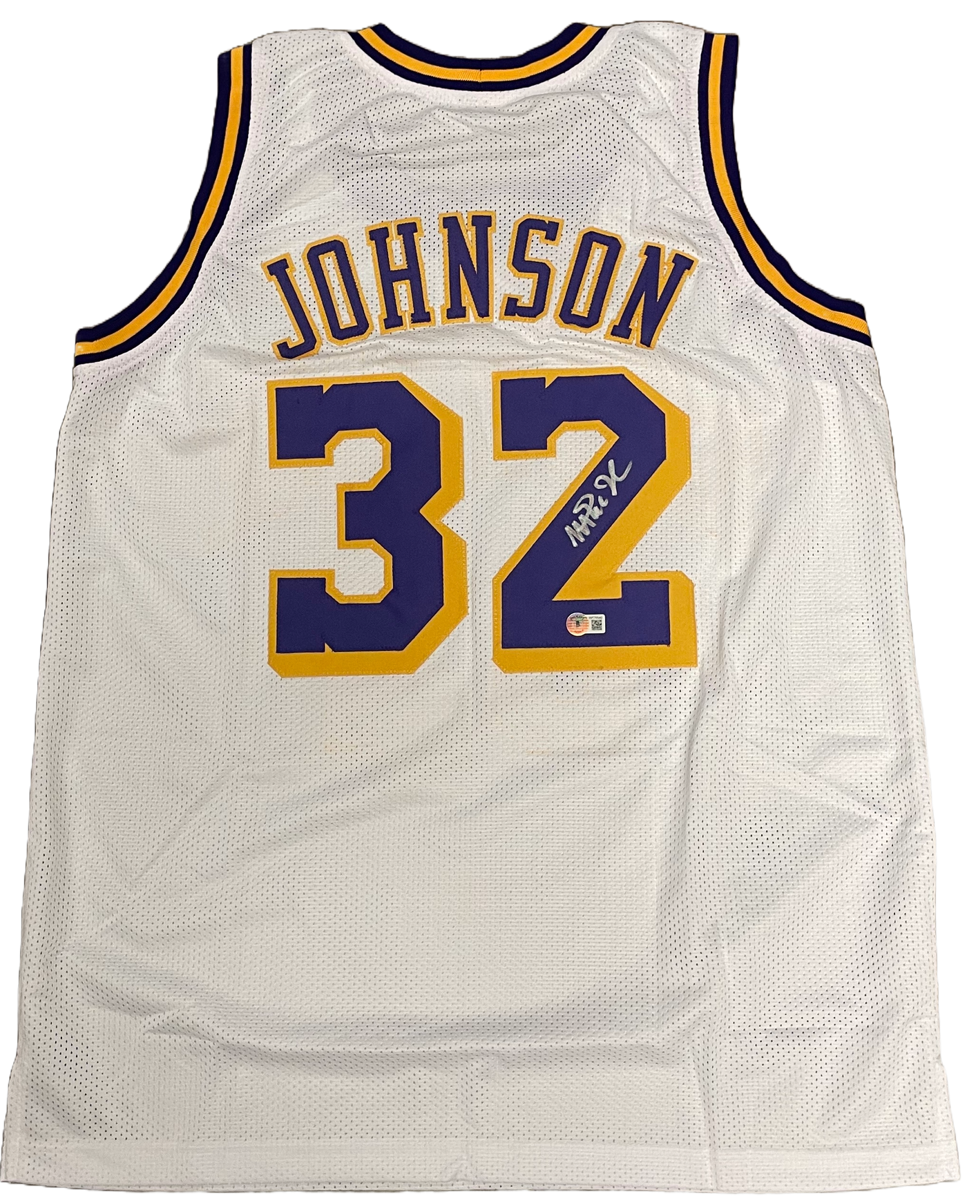 Magic Johnson Signed White Los Angeles Pro Style Jersey – Autographed BAS COA