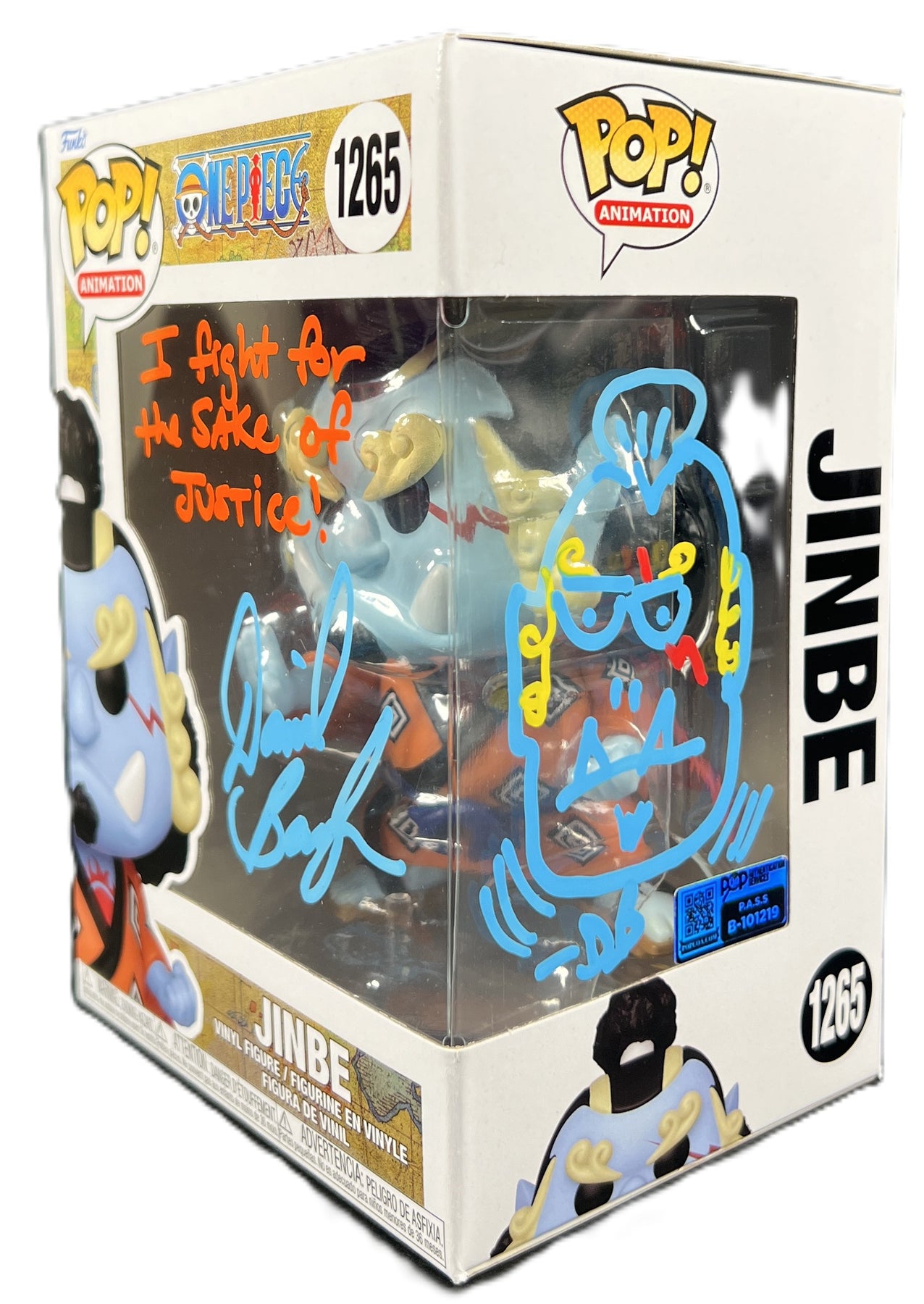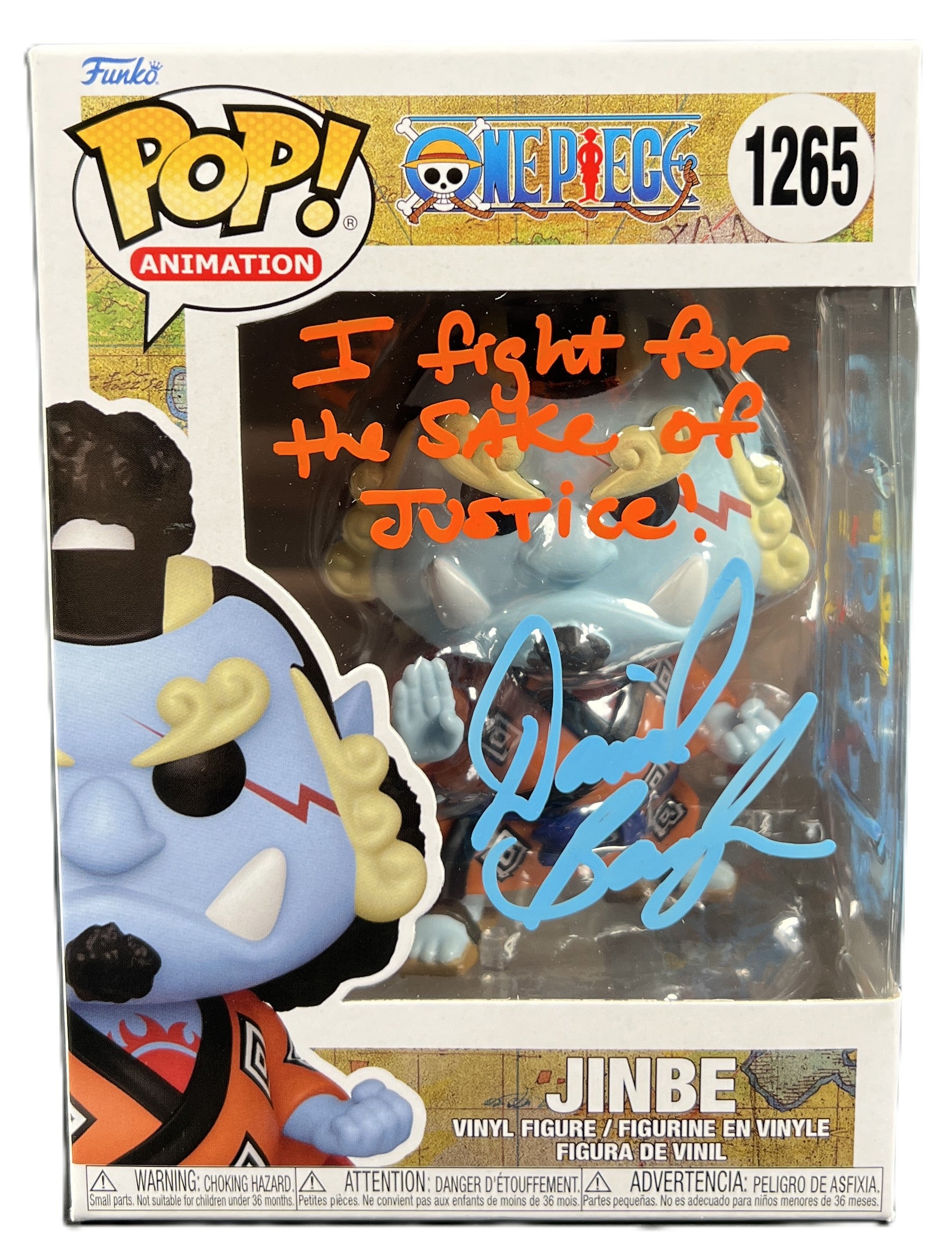 This Jinbe Funko Pop with sketch was personally signed by voice actor, Daniel Baugh. Each figure embodies the strength and honor of Jinbe, captured in Funko's iconic stylized form. Accompanied by a Certificate of Authenticity (COA), ensure that you're obtaining a genuine autographed collectible. Perfect for "One Piece" aficionados or autograph enthusiasts, this is a treasure that's as unique as the Grand Line itself!