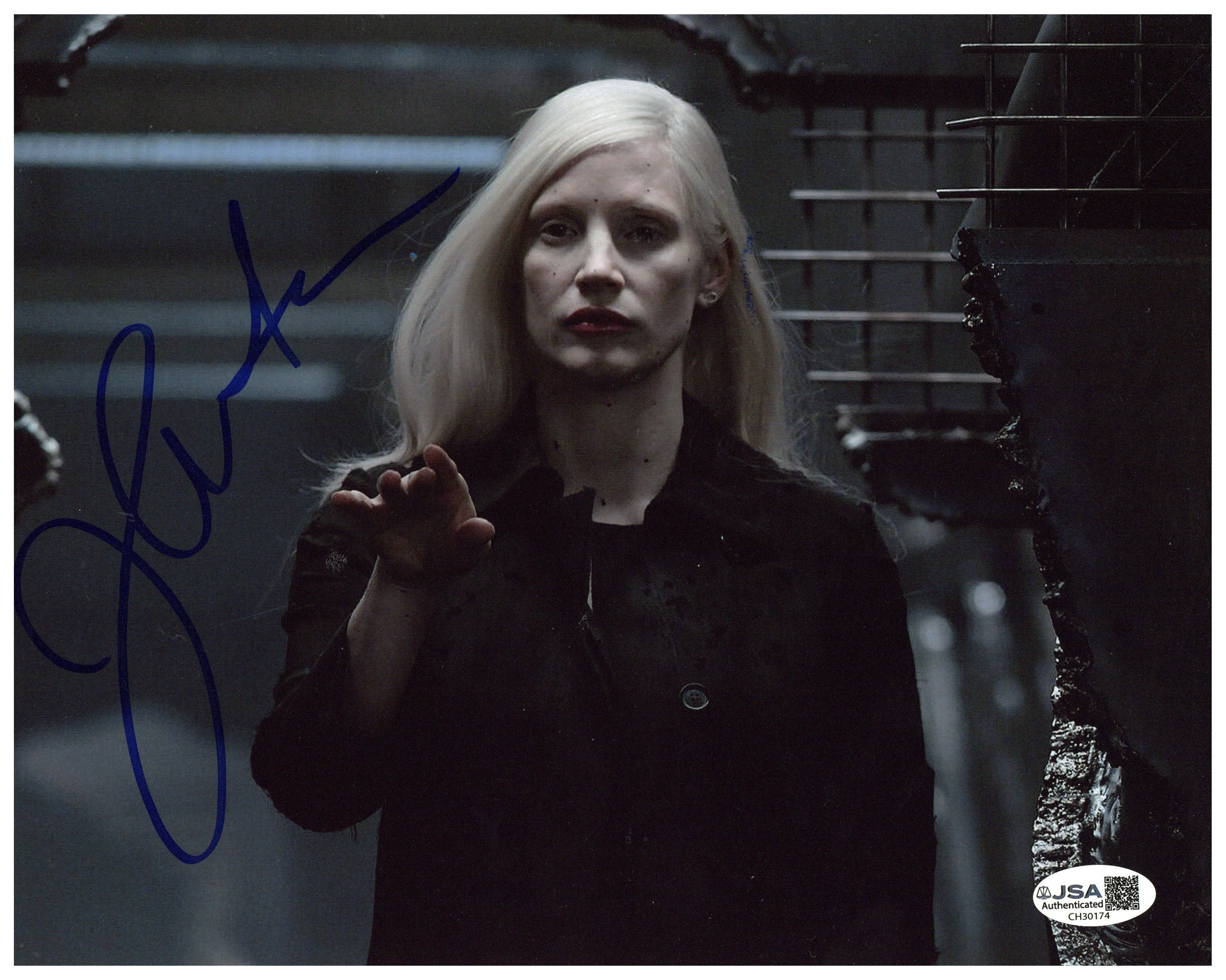 This 8x10 photo is personally hand-signed by Jessica Chastain and includes a JSA COA (James Spence Authentication) to guarantee 100% authenticity. Perfectly sized for framing, this collectible is a must-have for Marvel fans, X-Men enthusiasts, and autograph collectors alike.