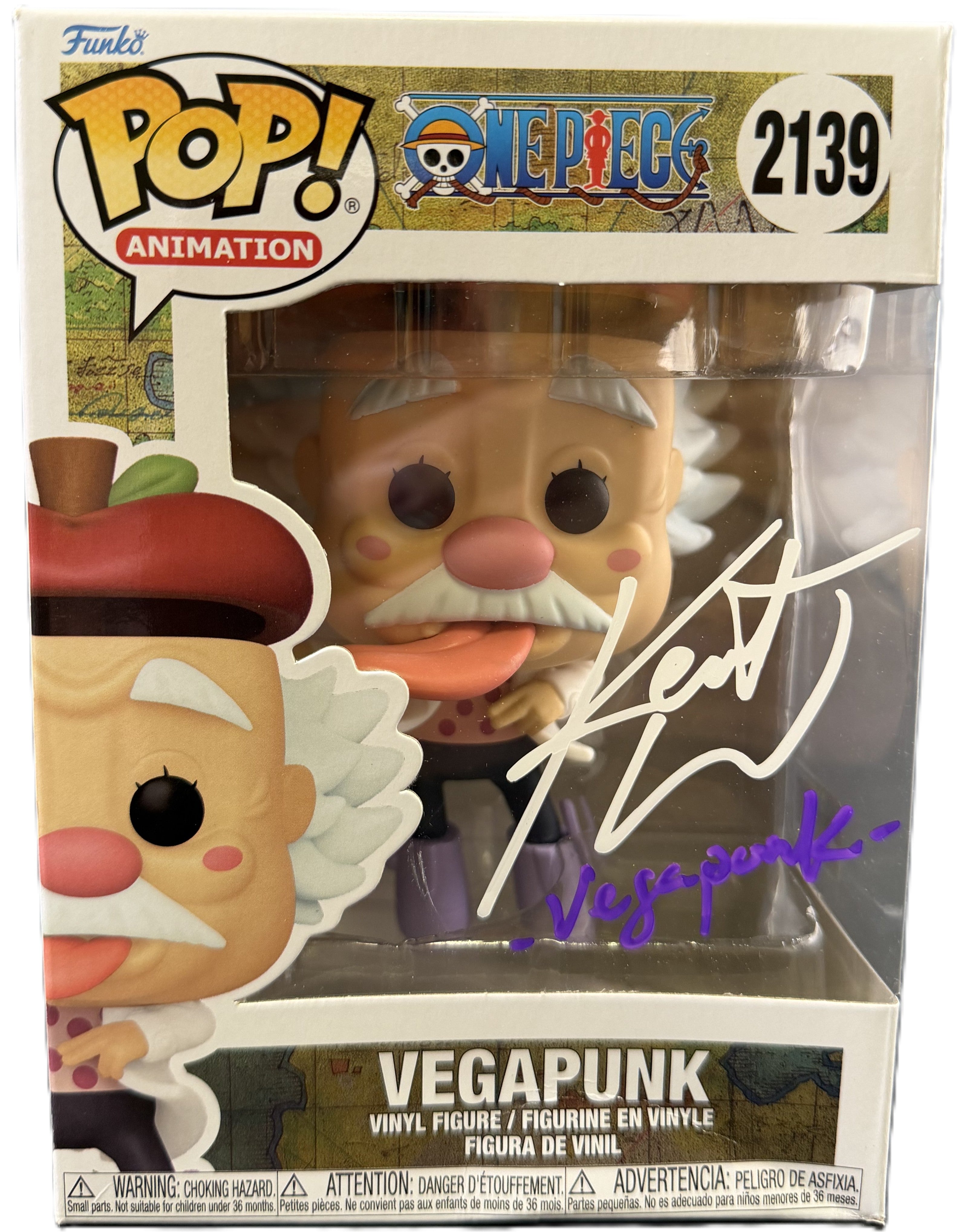 Add a standout anime collectible with this Kent Williams signed Funko POP, featuring Vegapunk from One Piece. Kent Williams is the English voice of Vegapunk, making this a must-have for anime collectors and One Piece fans.