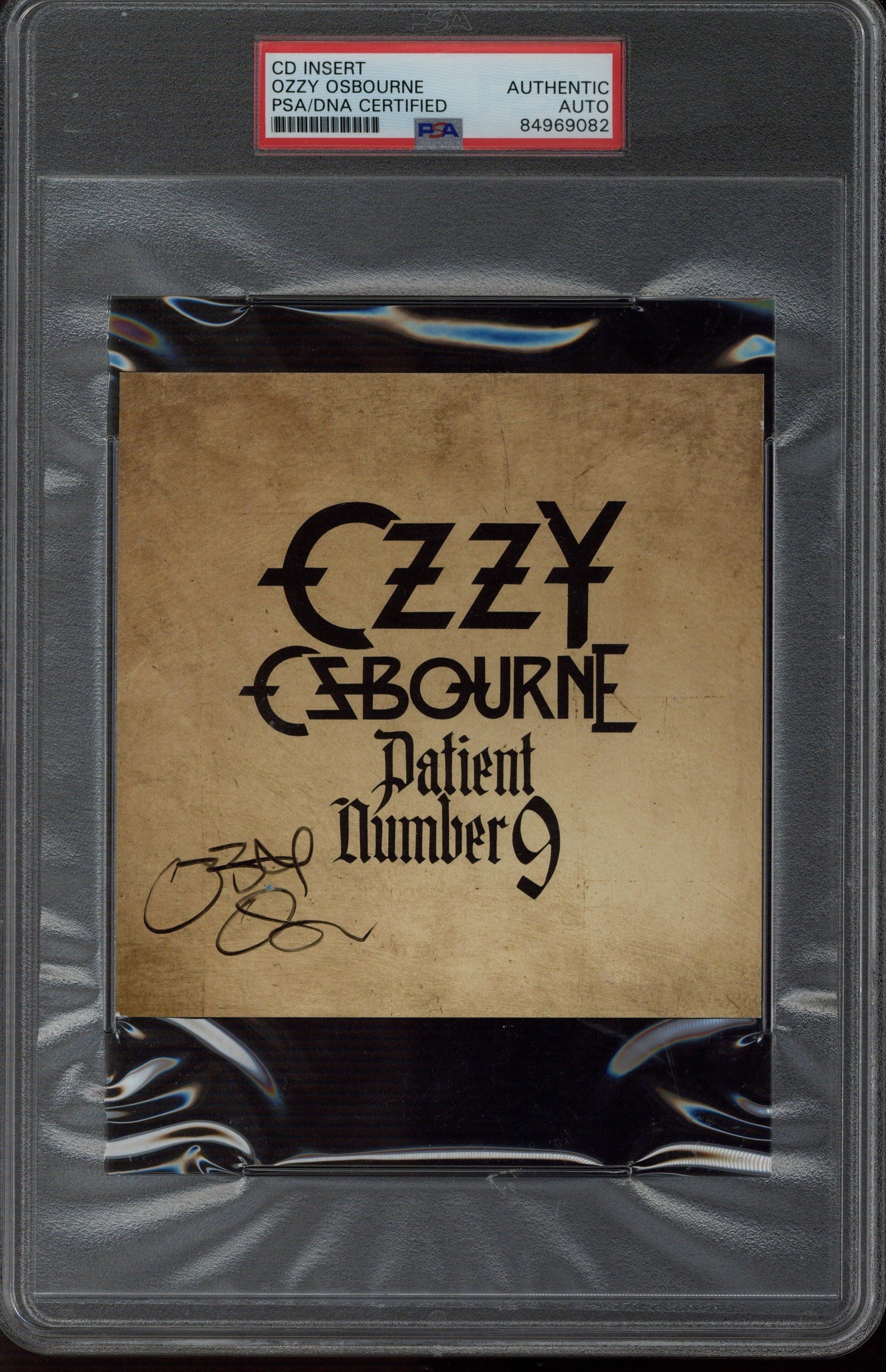 Celebrate the Prince of Darkness with this authentic Ozzy Osbourne signed Patient Number 9 album flat, encapsulated and authenticated by PSA/DNA. This striking collectible features Ozzy’s bold signature prominently displayed on the artwork from his acclaimed 2022 album Patient Number 9, which marked a triumphant return to form for the legendary rocker.