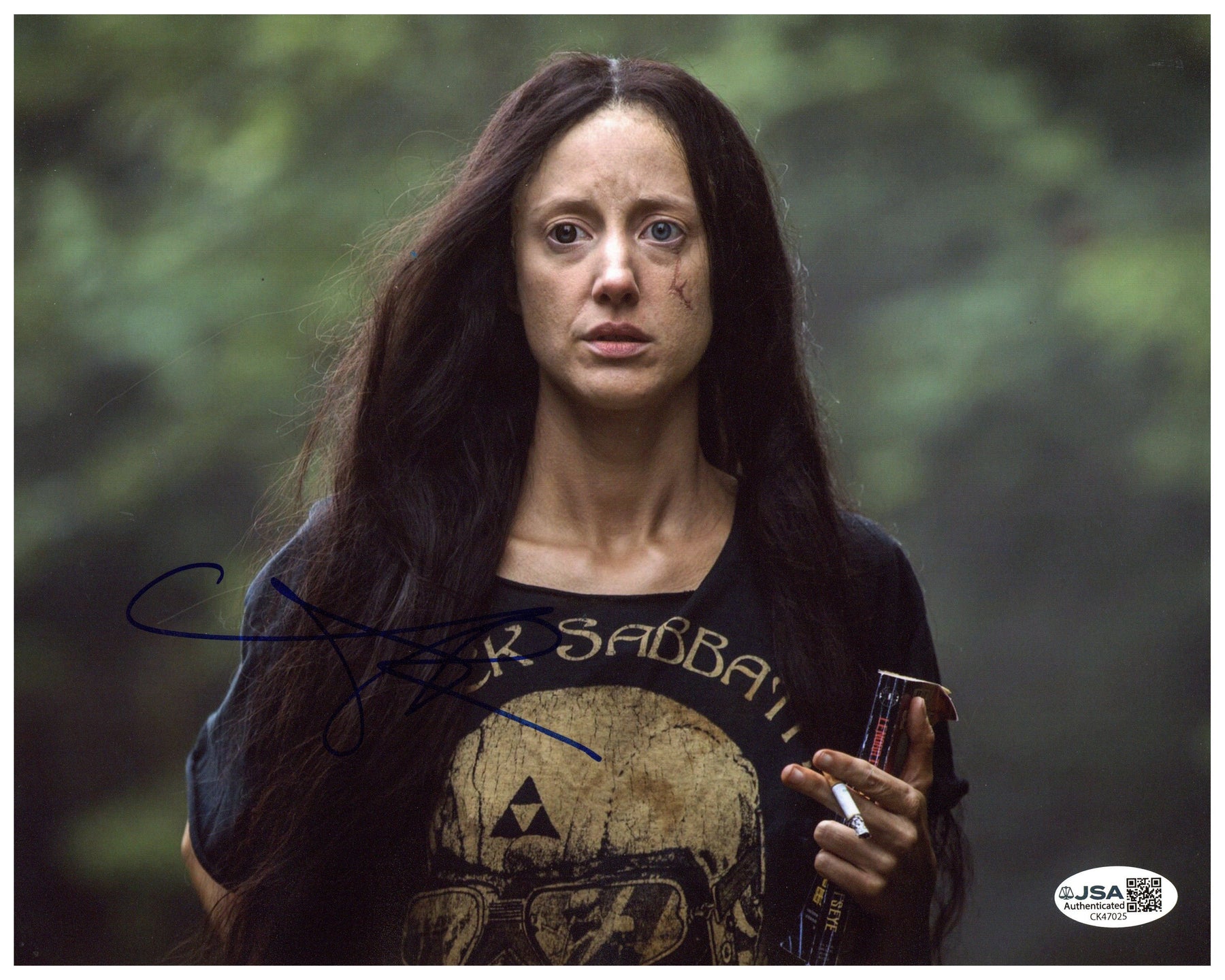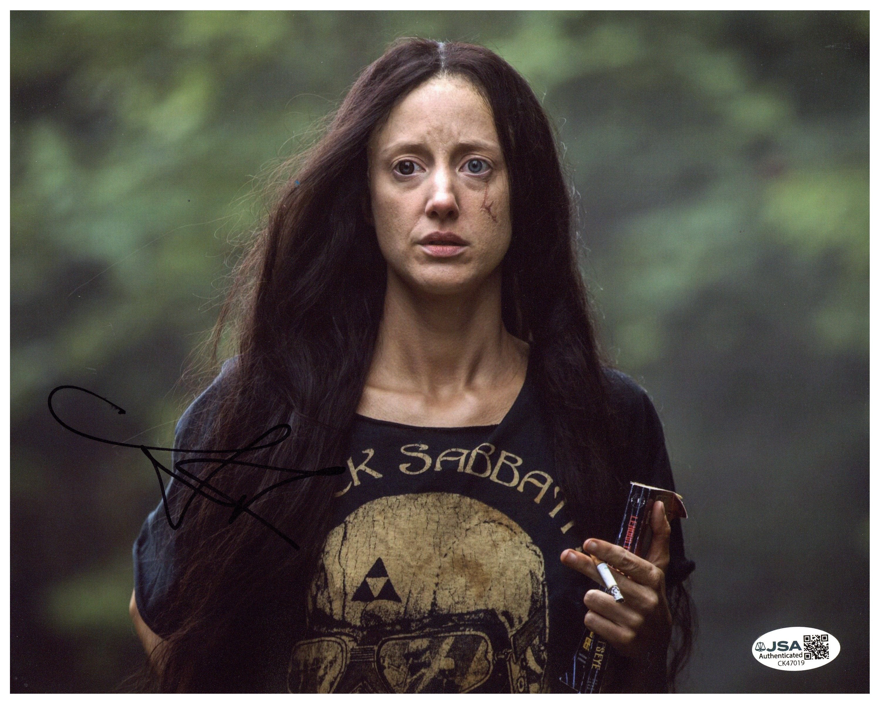 This 8x10 photograph has been hand-signed by Andrea Riseborough and comes with a James Spence Authentication (JSA) Certificate of Authenticity, guaranteeing the signature’s legitimacy. Perfect for display, framing, or as part of a curated autograph collection, this photo represents a certified collectible of one of today’s most talented performers.
