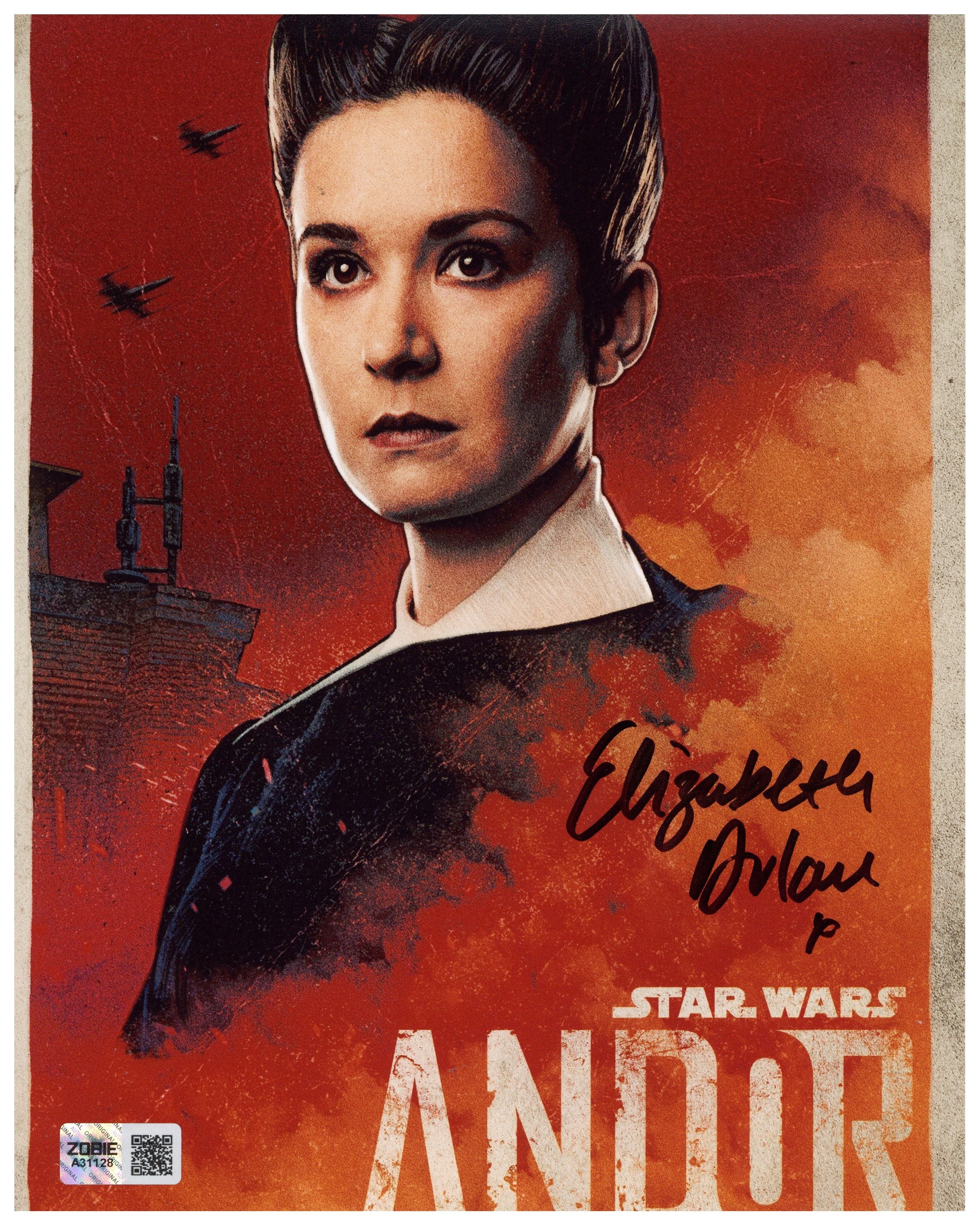 Celebrate the Star Wars saga with this Elizabeth Dulau signed Andor 8x10 photo, a must-have collectible for fans of the galaxy far, far away.