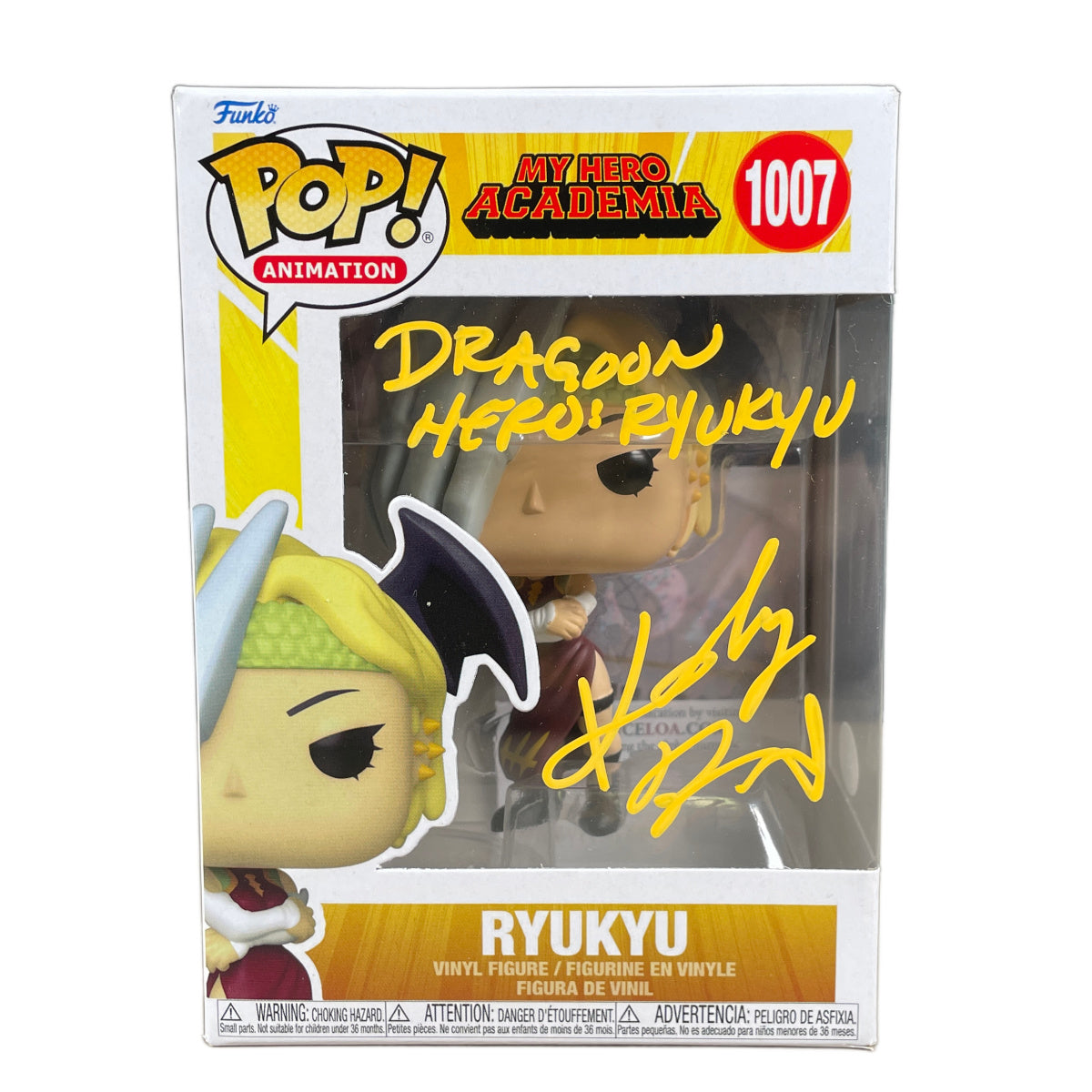 Add a heroic anime collectible to your display with this Katelyn Barr autographed Ryukyu Funko POP!, a standout piece celebrating one of My Hero Academia’s most powerful Pro Heroes.