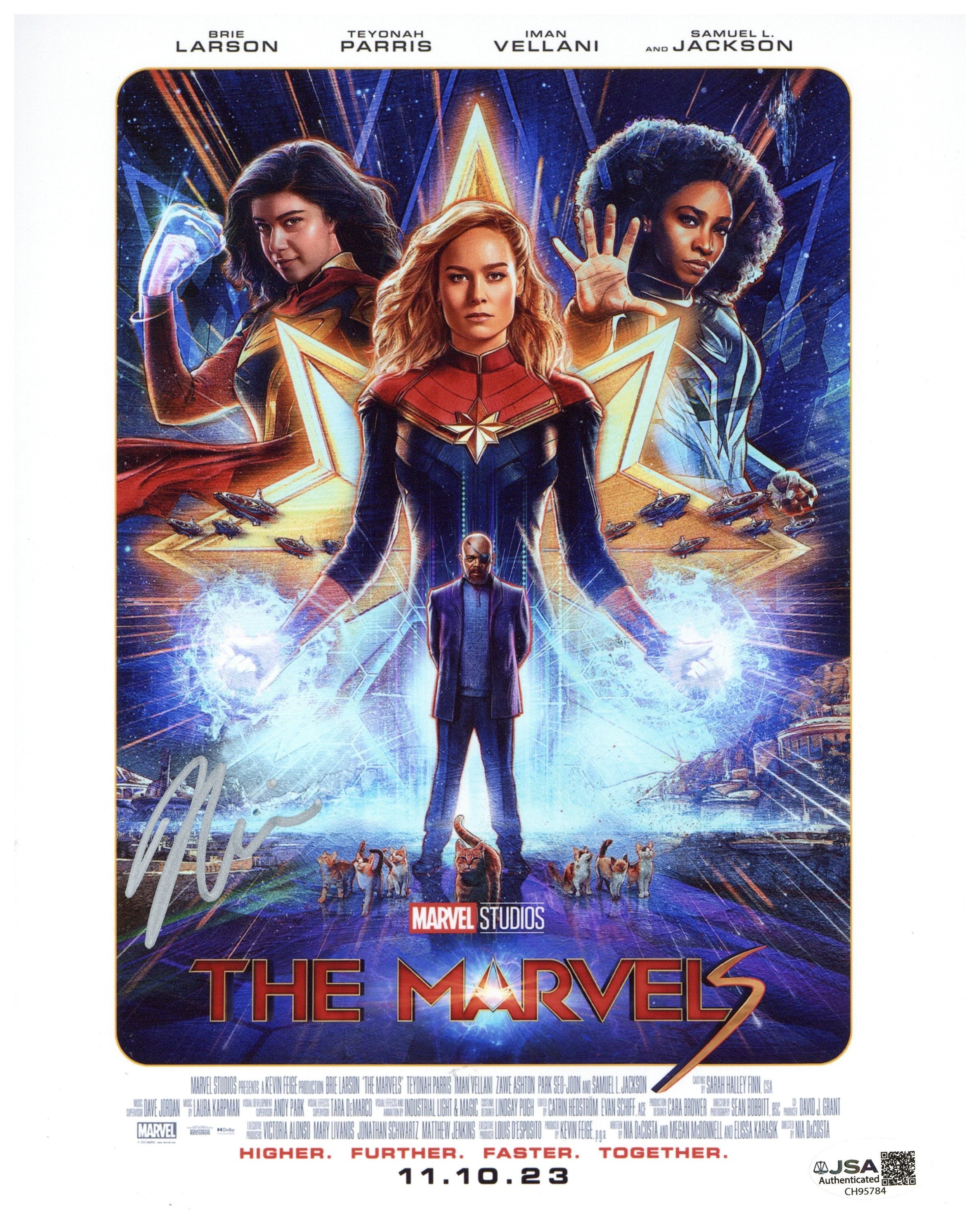 Celebrate the creativity and innovation of the Marvel Cinematic Universe with this Nia DaCosta signed 8x10 photo from The Marvels. As the groundbreaking director who brought together Captain Marvel, Monica Rambeau, and Ms. Marvel, DaCosta made history as one of the youngest and most dynamic filmmakers to helm a Marvel film. This autographed photo is a striking tribute to her artistic vision and leadership behind the camera.