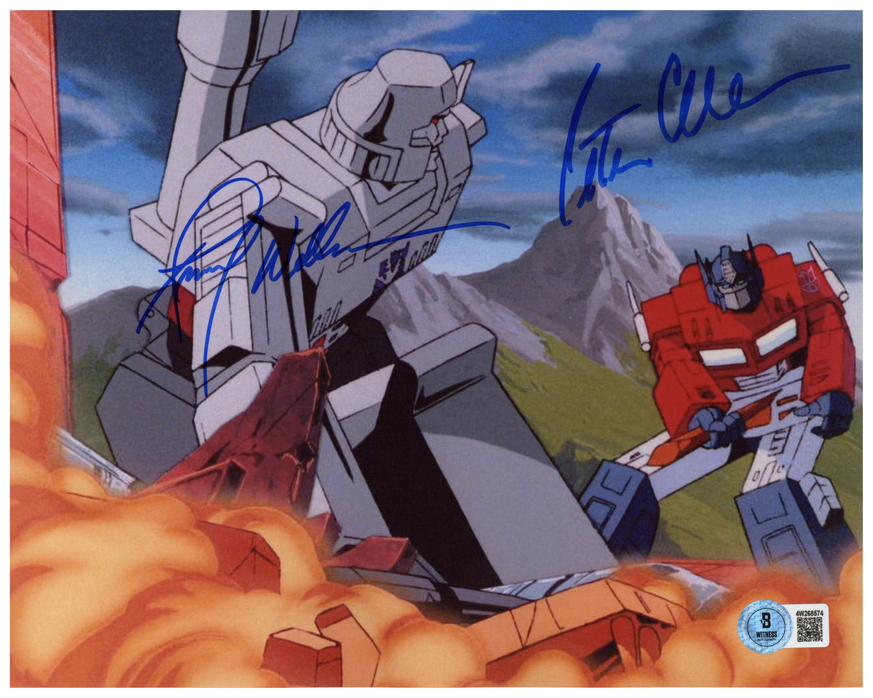 Celebrate two legends of animation and voice acting with this 8x10 photo personally signed by Peter Cullen and Frank Welker, the iconic voices behind Optimus Prime and Megatron in the Transformers universe. This is a rare opportunity to own a collectible signed by both performers who brought these beloved characters to life for generations of fans.