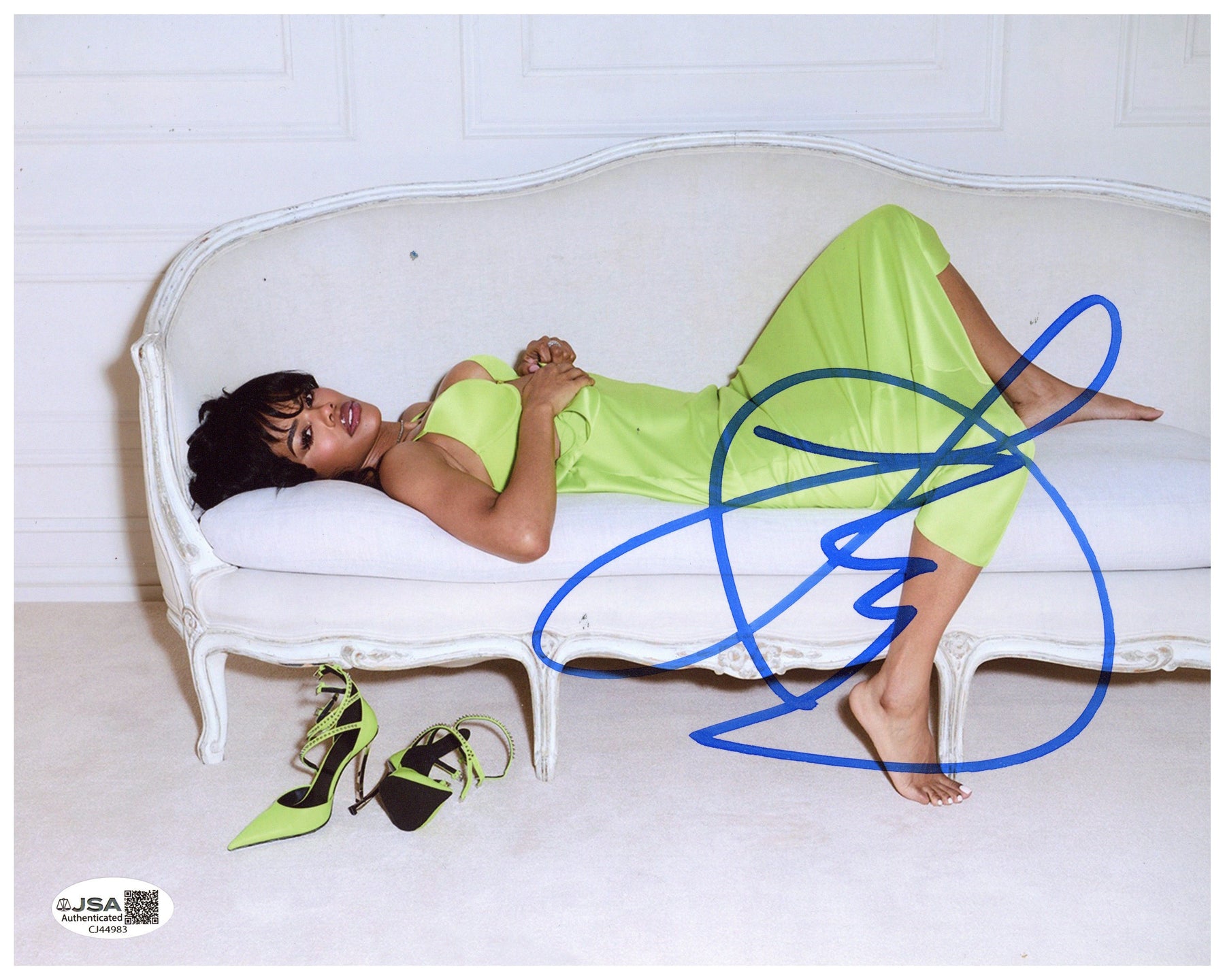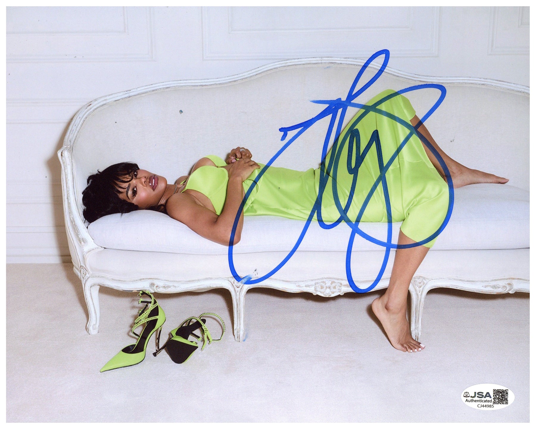 This 8x10 photograph has been hand-signed by Teyana Taylor and includes a James Spence Authentication (JSA) Certificate of Authenticity, ensuring the signature is genuine and fully verified. Perfect for framing, display, or as part of a curated autograph collection, this piece highlights the star power of one of today’s most dynamic performers.