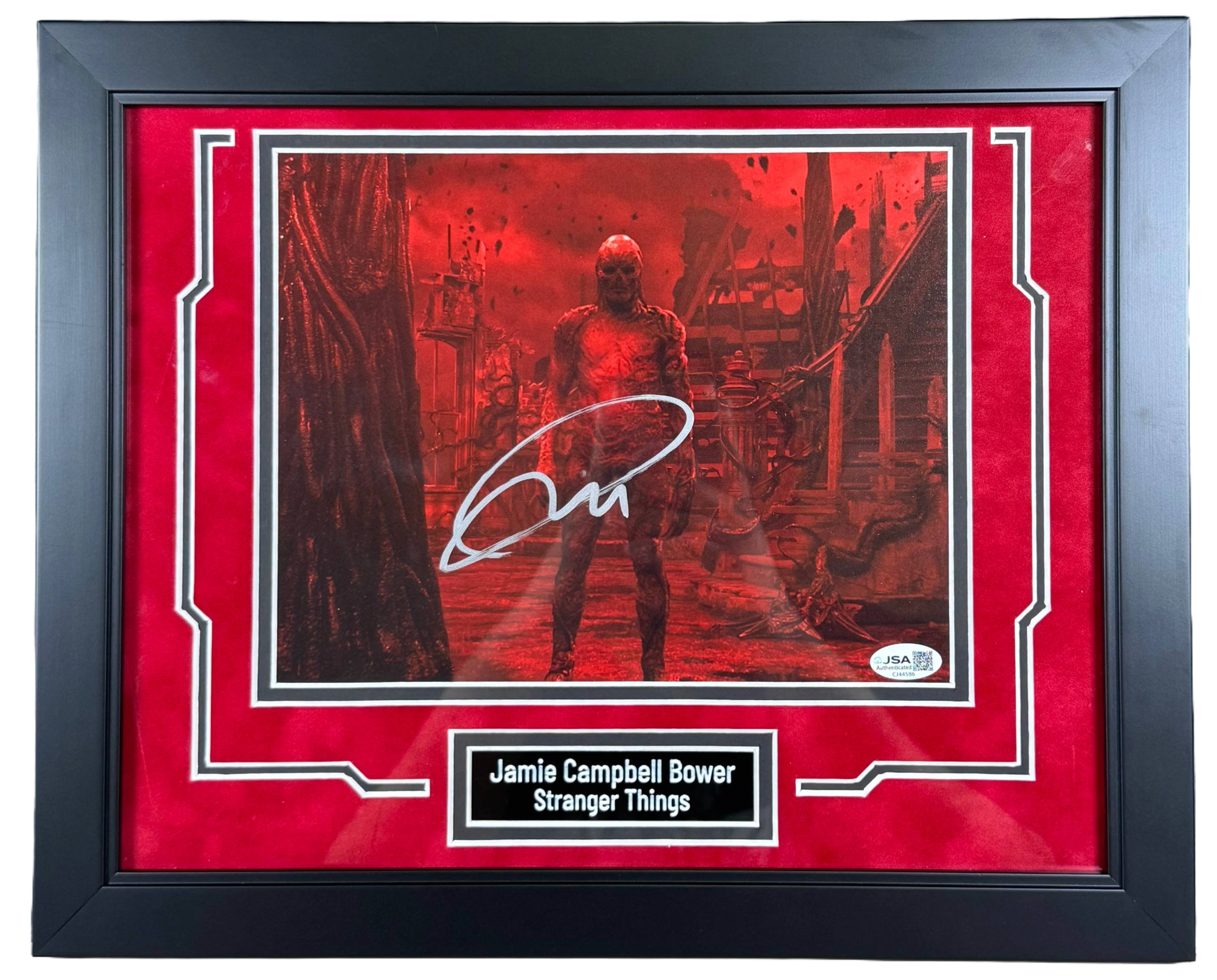 Hand-signed by Jamie Campbell Bower, this photo comes with a JSA COA (James Spence Authentication), ensuring authenticity and collector confidence. Perfect for framing, display, or as a centerpiece in a Stranger Things or villain-focused memorabilia collection, this autographed photo is ideal for fans of the show, collectors of TV memorabilia, and autograph enthusiasts.