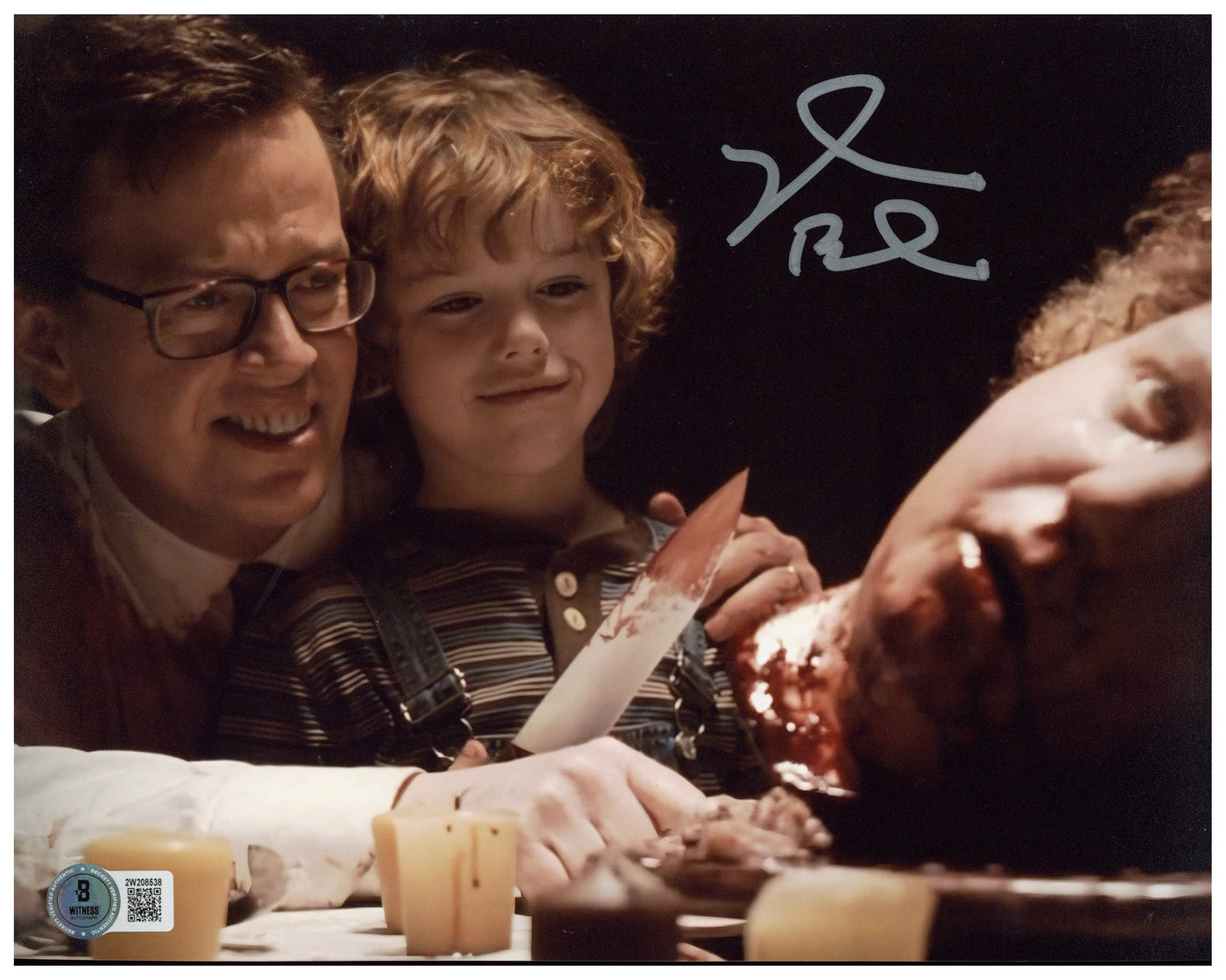 A terrifying addition to any horror collection—this Dylan Baker signed 8x10 photo features his role as the creepy and calculating school principal in Trick 'r Treat. Whether you're a Halloween fanatic or a collector of twisted tales, this BAS-certified photo delivers spooky authenticity.