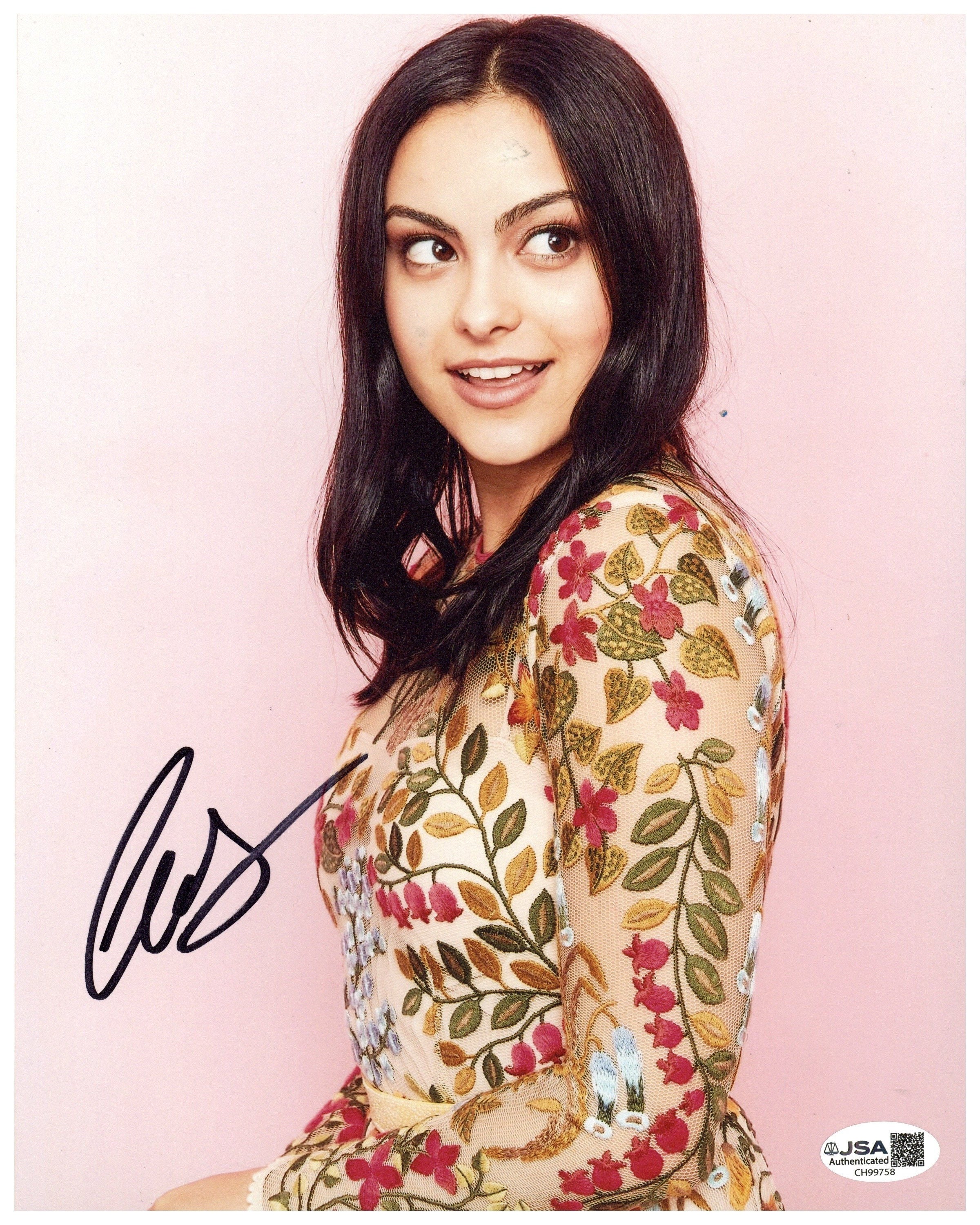 This 8x10 photograph has been personally hand-signed by Camila Mendes and comes with a JSA COA (James Spence Authentication), guaranteeing the authenticity of the signatures.