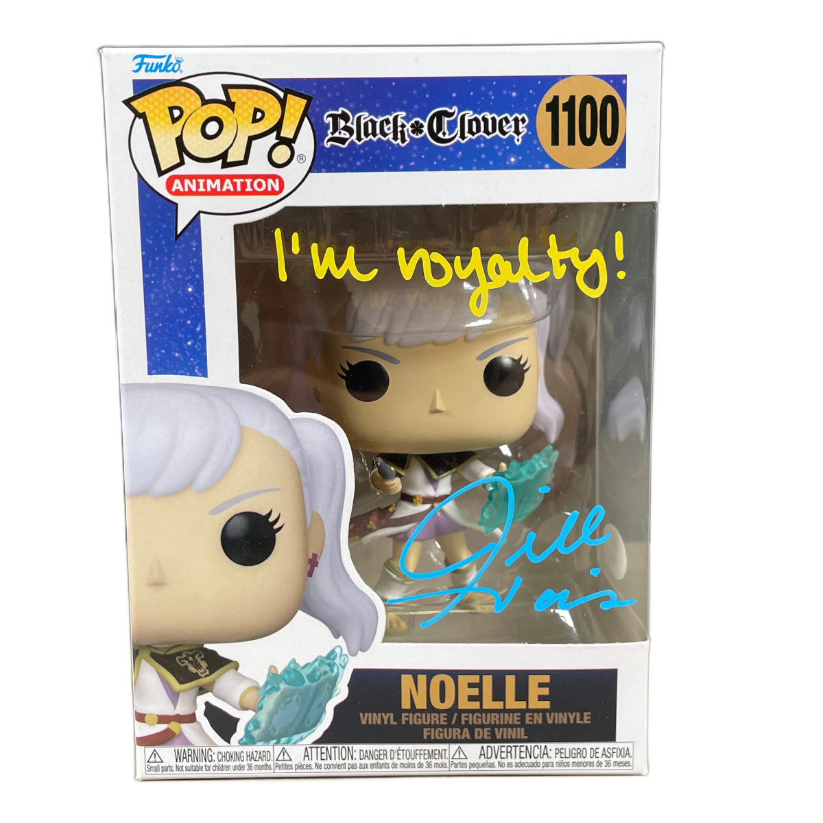 Add royal magic to your anime collection with this Jill Harris signed Funko POP! featuring Noelle Silva (#1100) from the hit anime series Black Clover. Jill Harris is known to anime fans as the English voice of Noelle Silva, bringing depth, strength, and emotion to one of the series’ most beloved characters as she grows into a powerful Magic Knight.