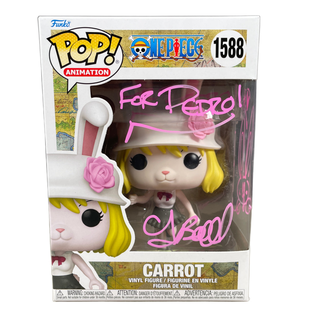 Add a standout anime collectible to your shelf with this Tia Ballard autographed Carrot Funko POP!, a premium piece celebrating one of One Piece’s most charming and adventurous characters.