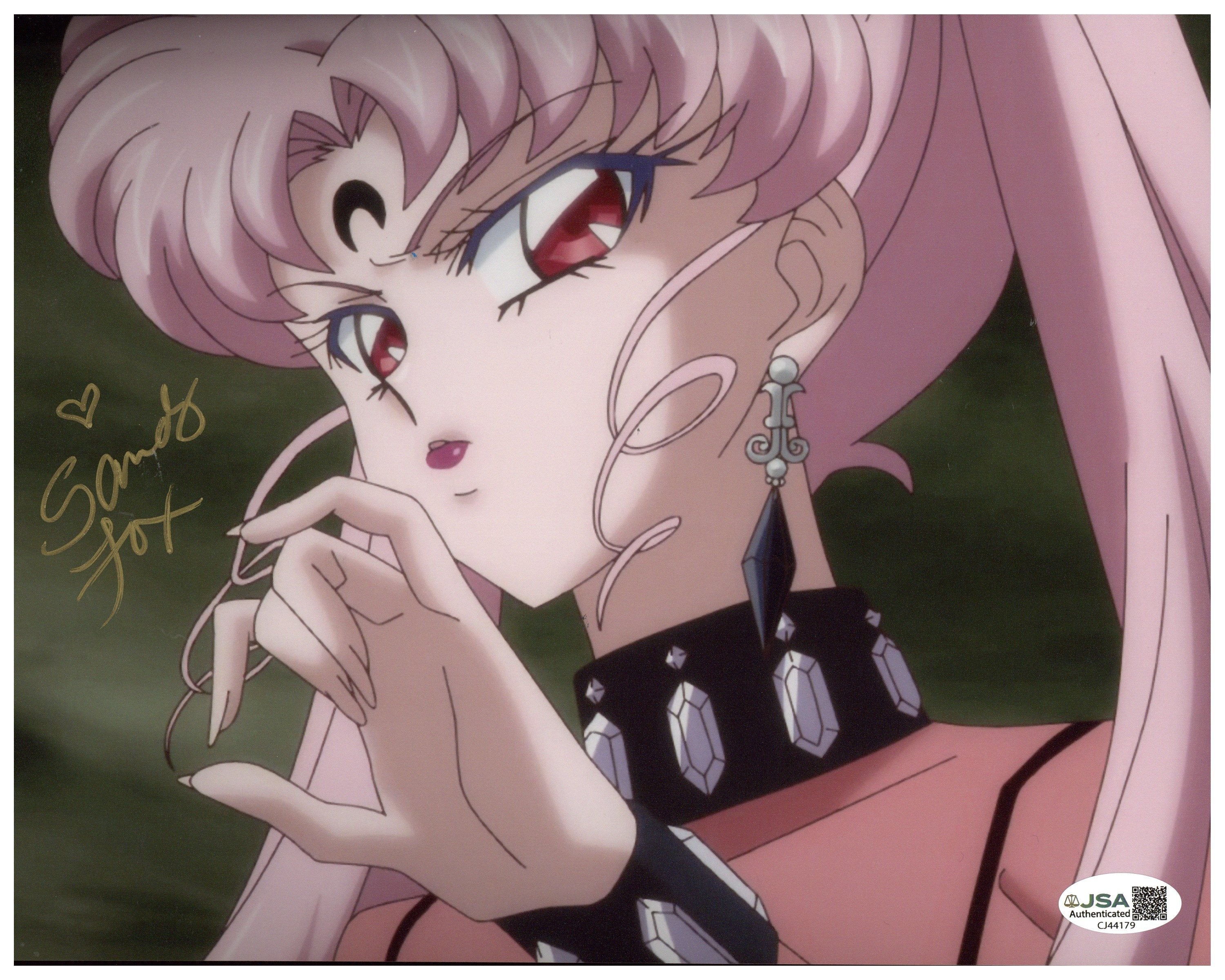 Add a striking villain to your anime collection with this Sandy Fox signed 8x10 photo, featuring Black Lady from Sailor Moon Crystal. Sandy Fox provides the English voice of Black Lady, making this autograph a must-have for fans of the series and voice actor collectors.