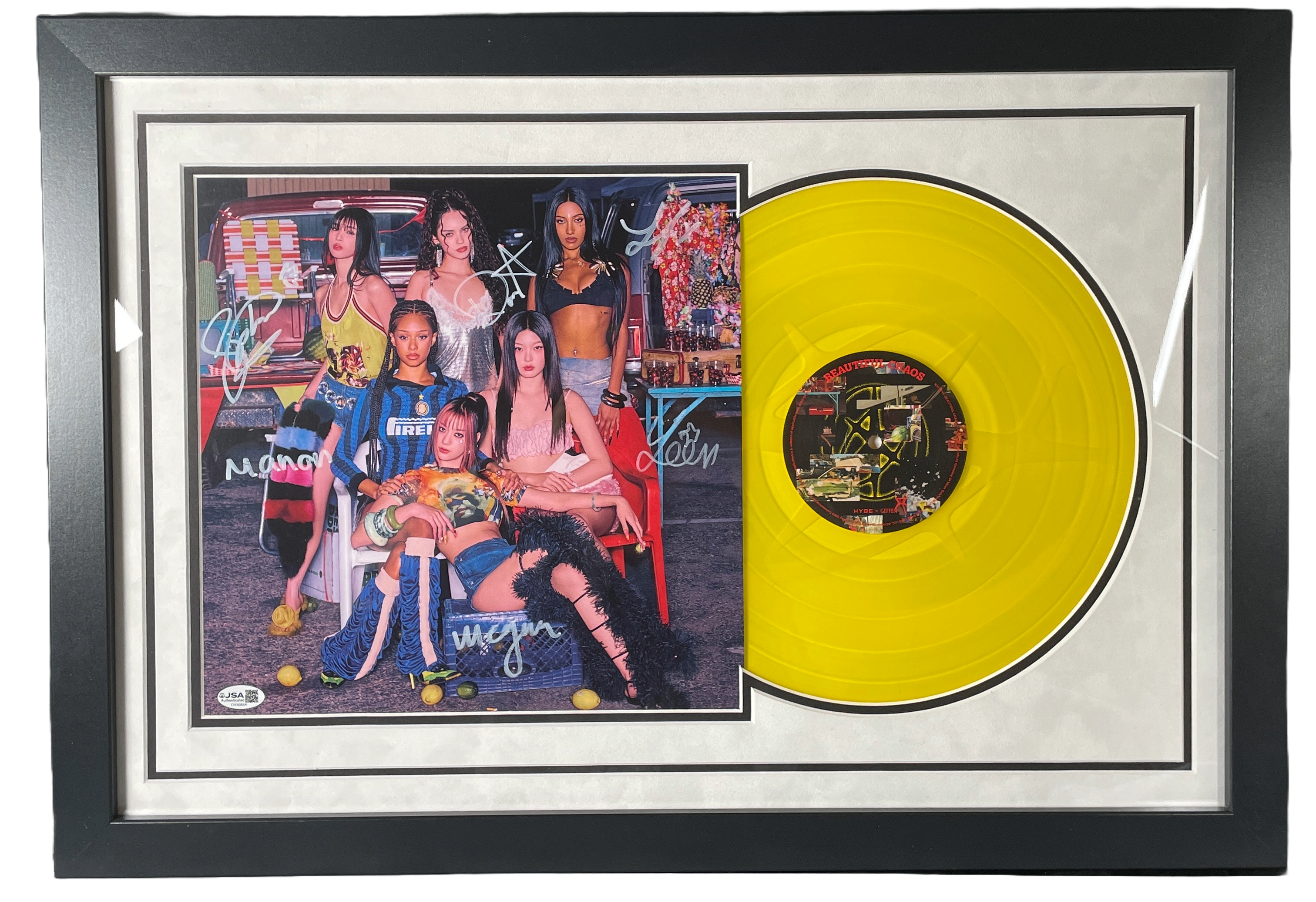 Celebrate the global girl group Katseye with this rare full-group signed vinyl of their “Beautiful Chaos” release, beautifully custom framed and authenticated with a JSA COA. This collectible piece features signatures from all six members: Sophia, Lara, Manon, Megan, Daniela, and Yoonchae — a perfect memento for fans of their dynamic music and chart-topping hits.