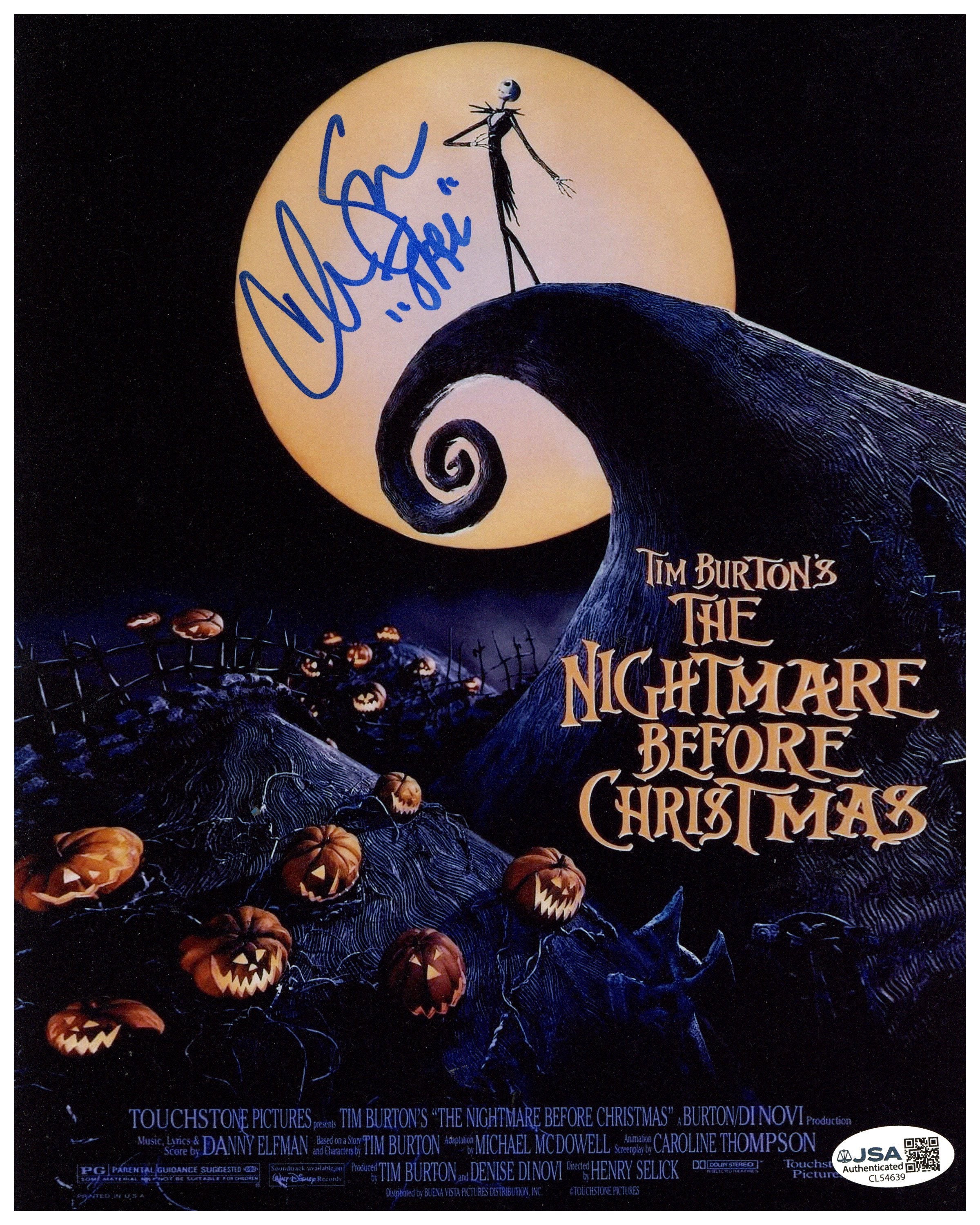 Authentic hand-signed 8x10 photo of Chris Sarandon, known as the speaking voice of Jack Skellington in Disney’s The Nightmare Before Christmas. This autograph is fully authenticated by James Spence Authentication (JSA) and includes a Certificate of Authenticity (COA), making it a must-have for Disney, Halloween, and animation collectors.