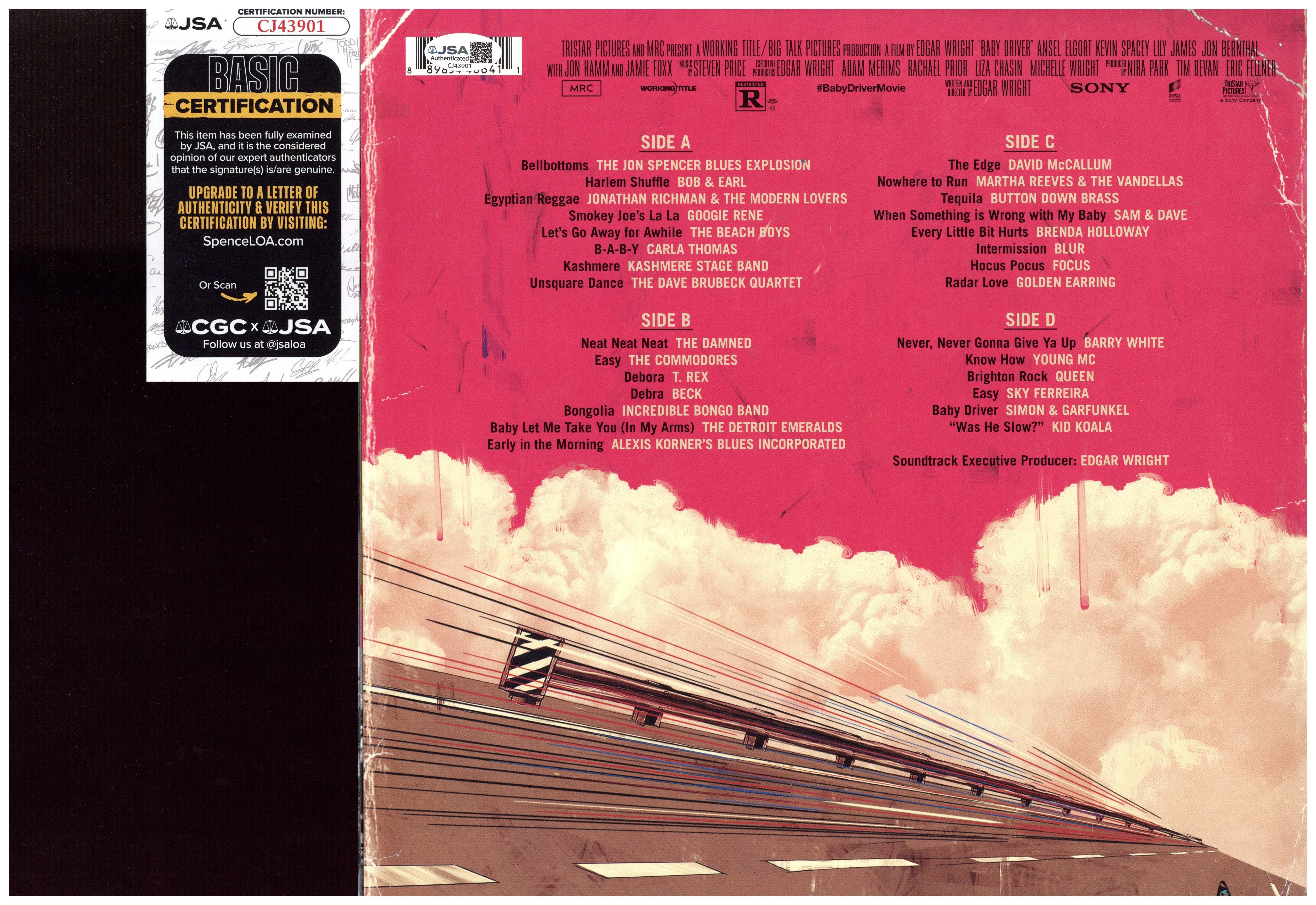 This vinyl record is authenticated by JSA (James Spence Authentication), guaranteeing the autograph is 100% genuine. Perfect for display, this signed Baby Driver vinyl is ideal for collectors of film memorabilia, signed records, and celebrity autographs.