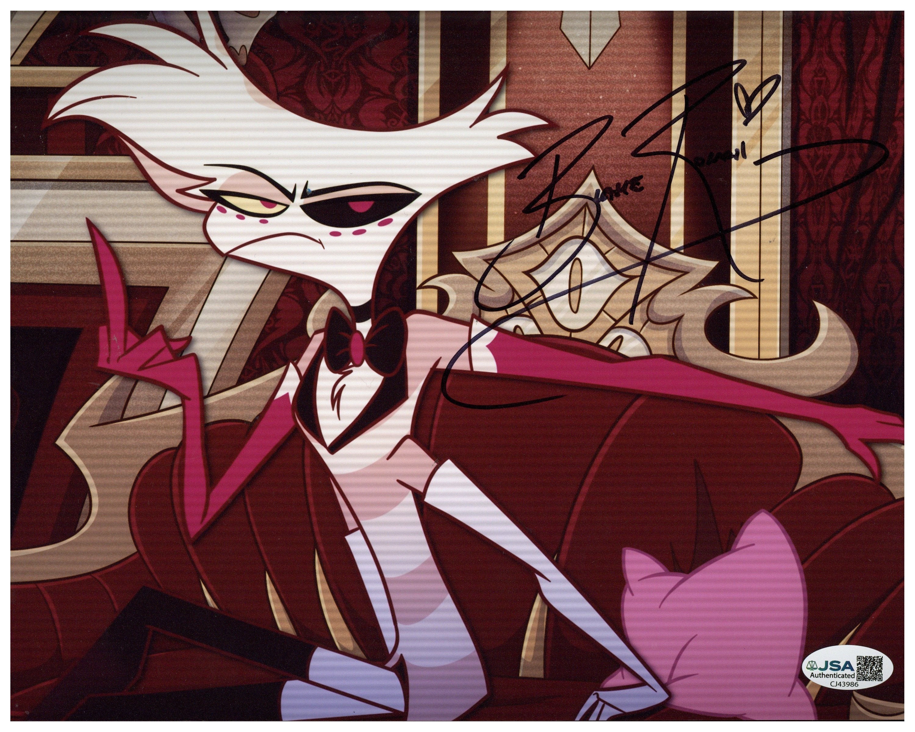 Add a standout piece of animation memorabilia to your collection with this Blake Roman signed 8x10 photo, featuring Angel Dust from the hit animated series Hazbin Hotel. Blake Roman provides the singing voice of Angel Dust, making this autograph especially desirable for fans of the show and animation voice acting.