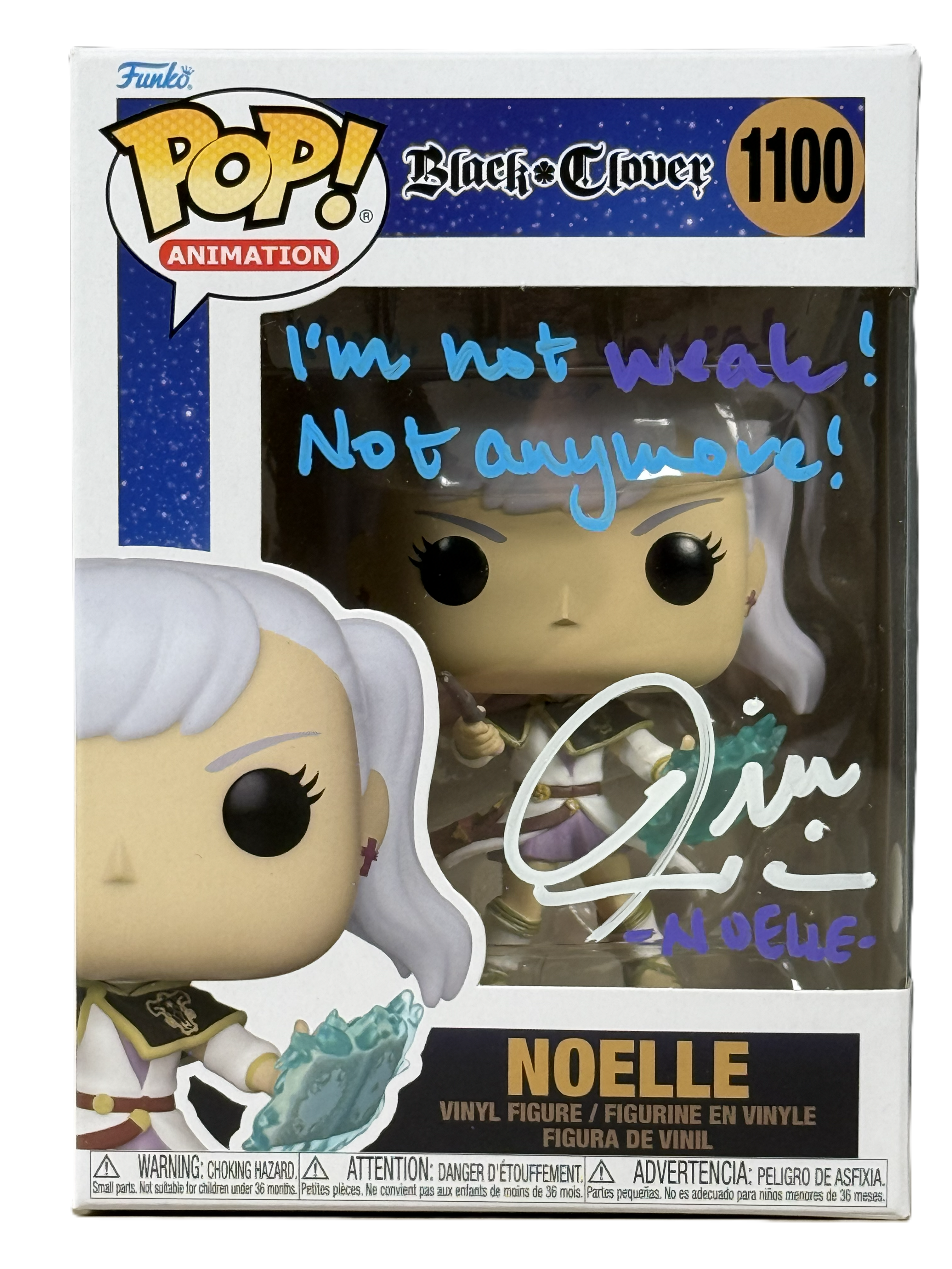 Add royal magic to your anime collection with this Jill Harris signed Funko POP! featuring Noelle Silva (#1100) from the hit anime series Black Clover. Jill Harris is known to anime fans as the English voice of Noelle Silva, bringing depth, strength, and emotion to one of the series’ most beloved characters as she grows into a powerful Magic Knight.