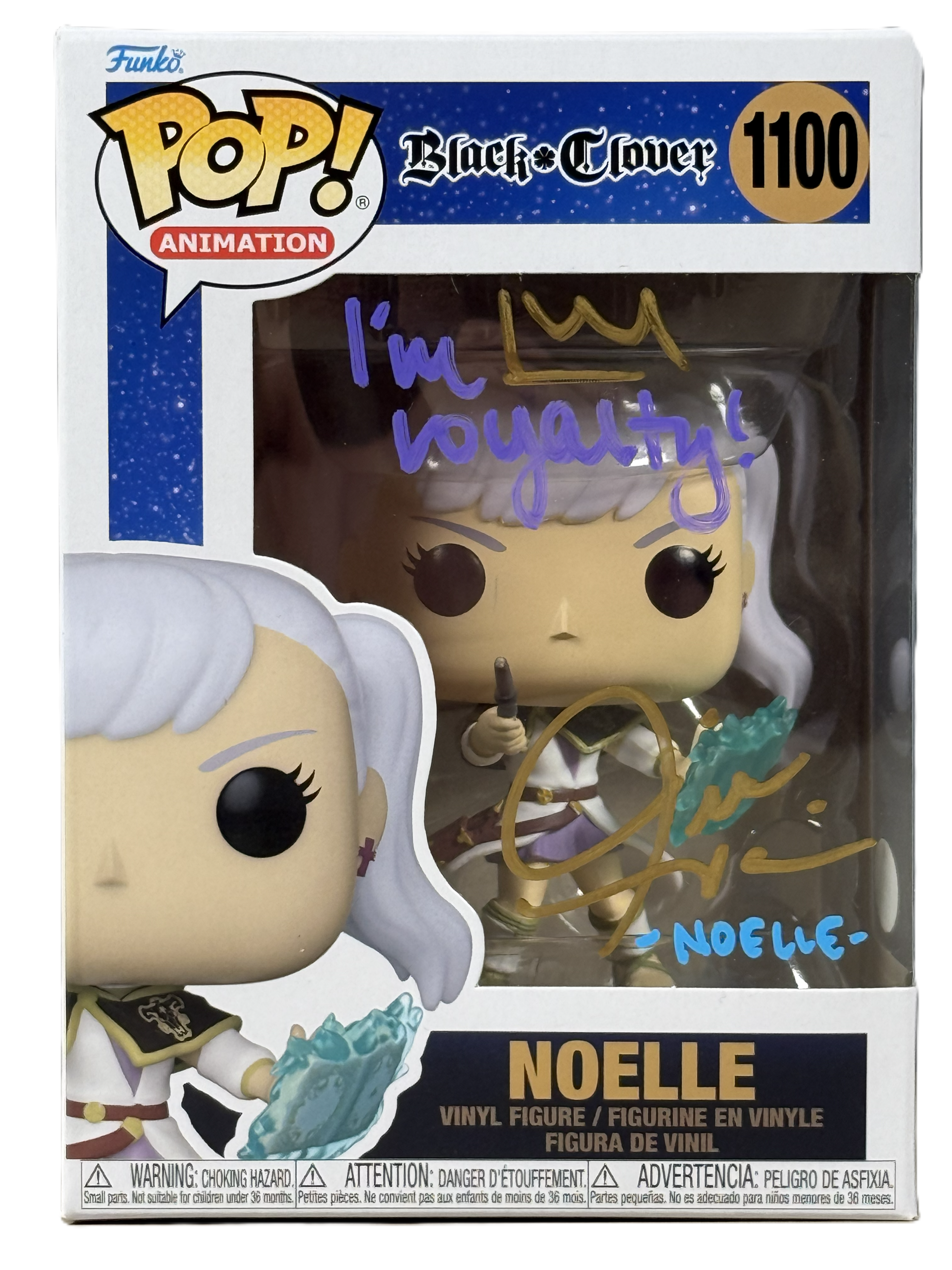 Add royal magic to your anime collection with this Jill Harris signed Funko POP! featuring Noelle Silva (#1100) from the hit anime series Black Clover. Jill Harris is known to anime fans as the English voice of Noelle Silva, bringing depth, strength, and emotion to one of the series’ most beloved characters as she grows into a powerful Magic Knight.