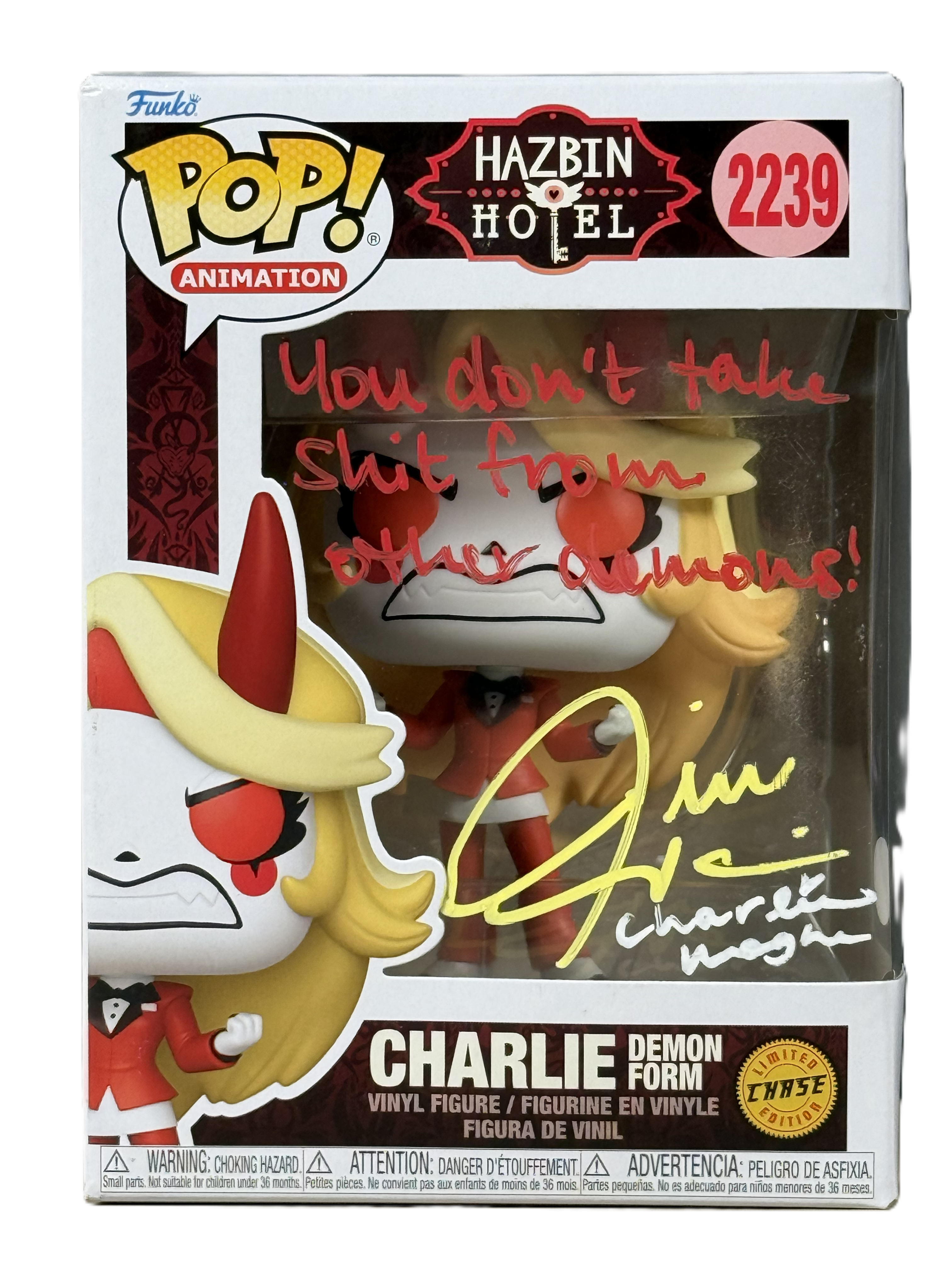 Authentic hand-signed Funko Pop #2239 of Jill Harris, featuring her voice role as Charlie Morningstar in Hazbin Hotel.