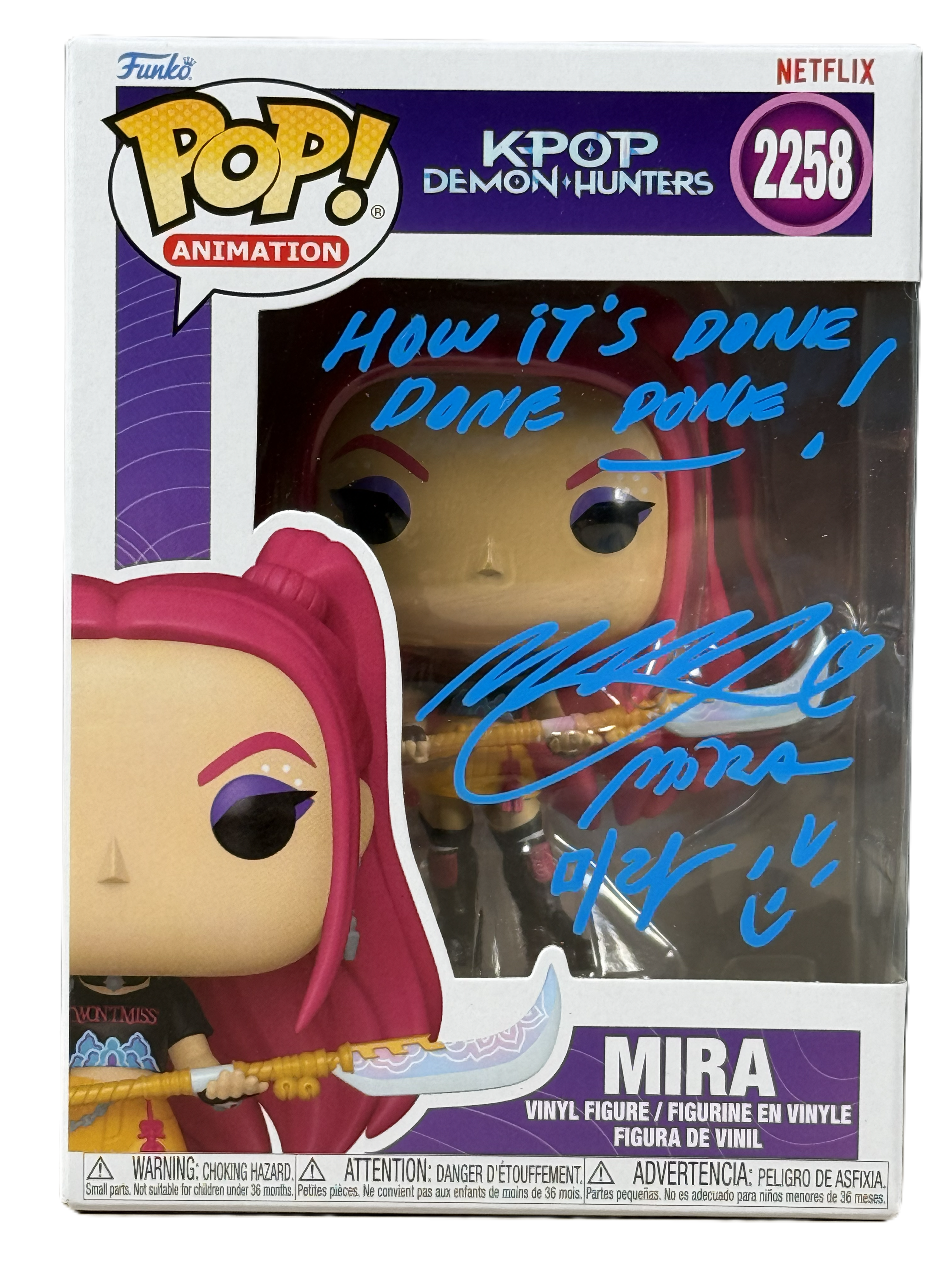 Authentic hand-signed Funko Pop vinyl figure of May Hong, featuring her role as Mira in KPop Demon Hunters.
