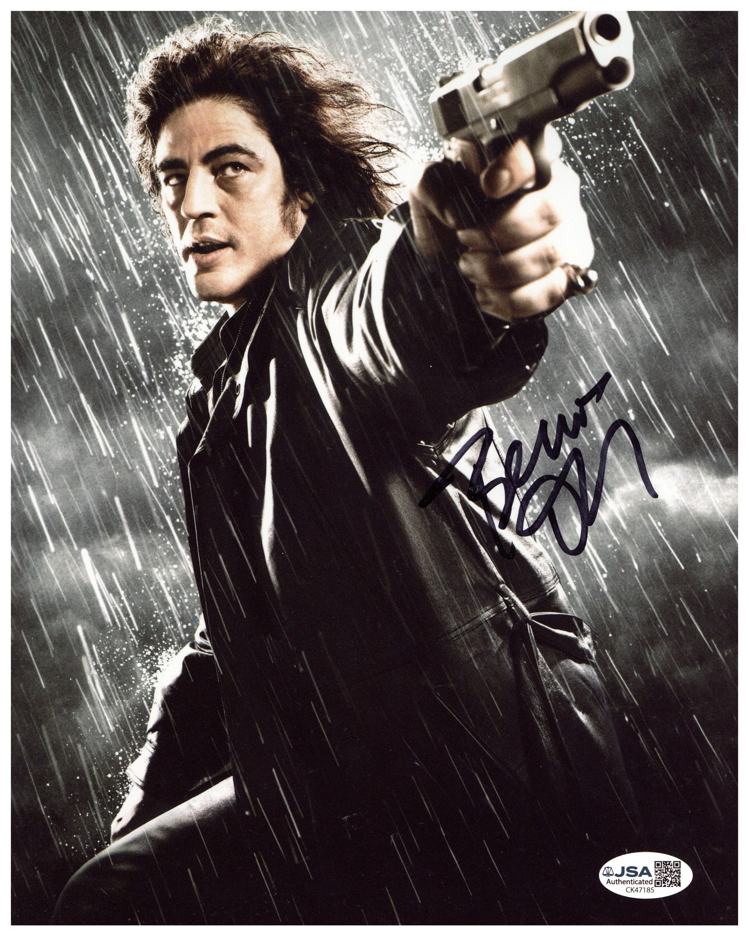 Benicio del Toro delivered a memorable performance as Jack “Jackie Boy” (or another key role depending on the image) in Sin City, making this a must-have collectible for film enthusiasts and autograph collectors.