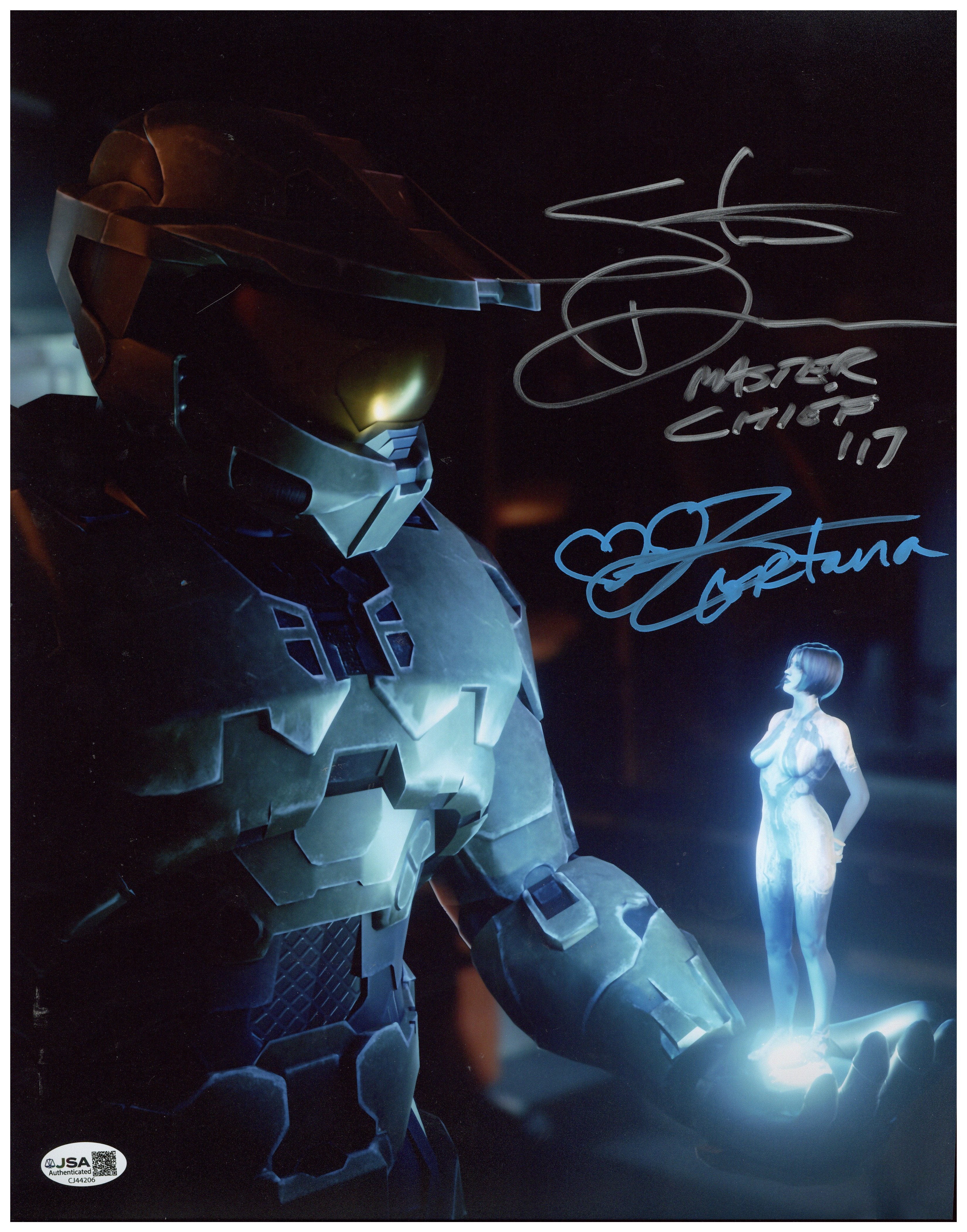 Add an iconic piece of gaming history to your collection with this Steve Downes & Jen Taylor signed 11x14 photo, featuring the voices of Master Chief and Cortana from the legendary Halo video game series. This collectible is a must-have for fans of the franchise and voice actor autograph collectors alike.