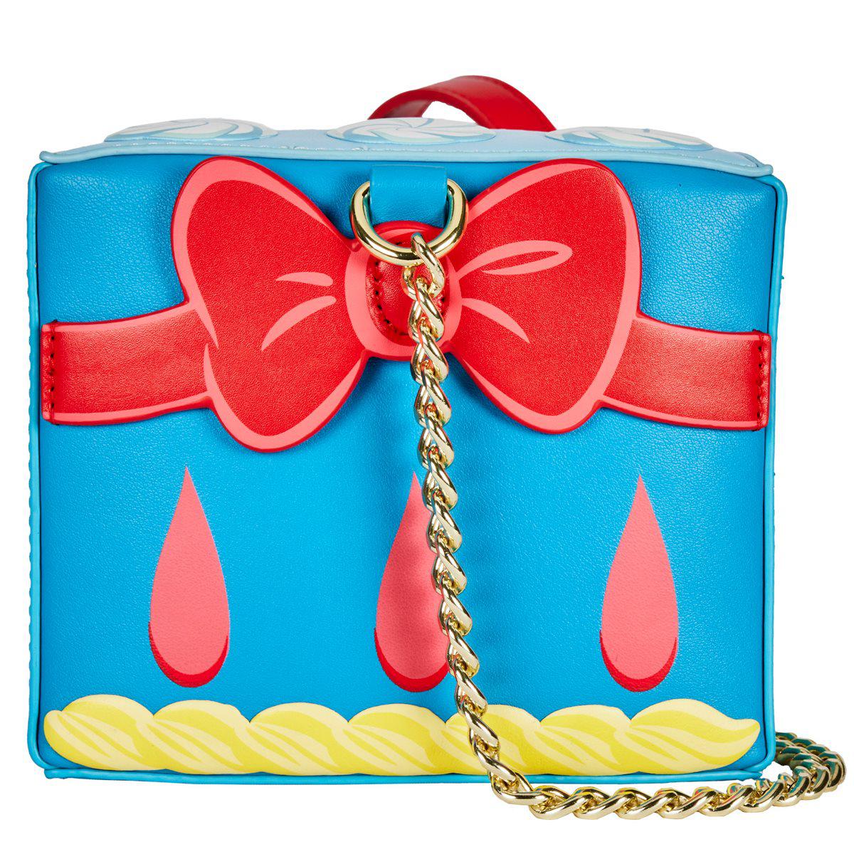 Show off your Disney Princess fandom with this Snow White Cosplay Cake Crossbody Purse! It is made of faux leather and features a chain strap, matching themed lining, applique, embroidered bag charm, and printed details. This crossbody purse approximately measures 9 1/2-inches wide x 5-inches tall x 6-inches deep. Ages 15 and up.