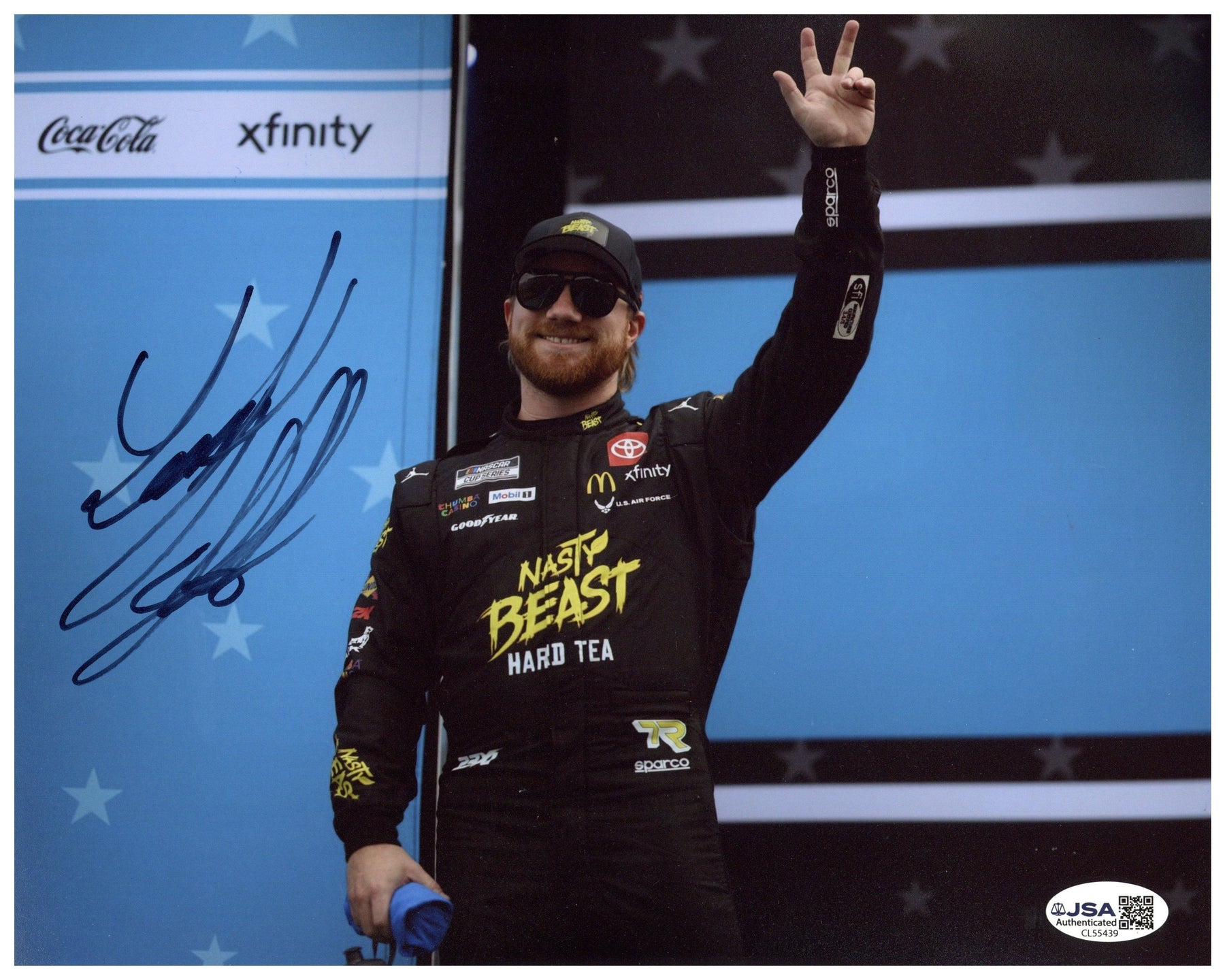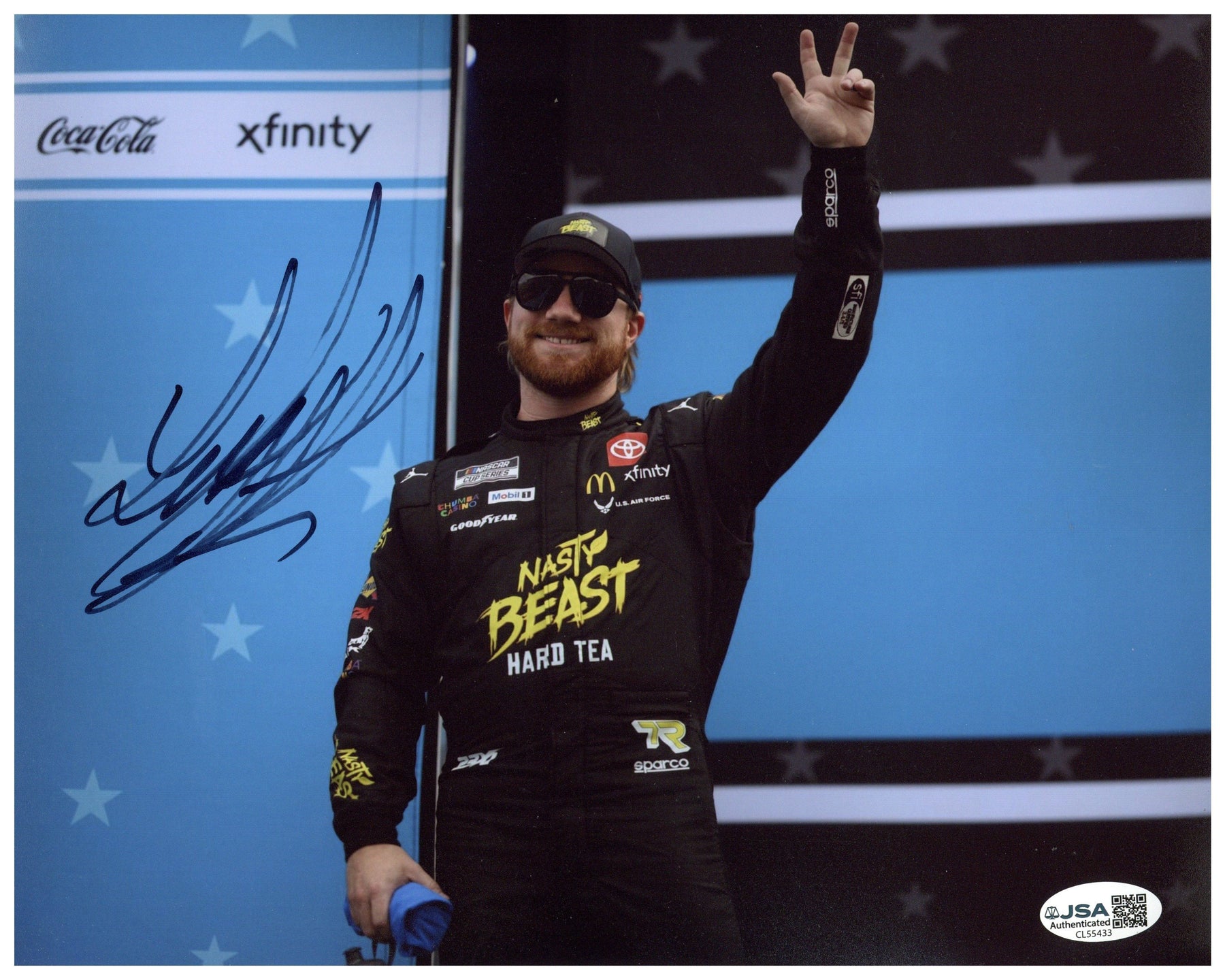 This 8x10 photograph has been personally autographed by Tyler Reddick and comes with a JSA (James Spence Authentication) Certificate of Authenticity, ensuring the signature’s legitimacy. JSA is one of the most respected authentication services in the memorabilia industry, making this signed photo a trustworthy addition to any collection.